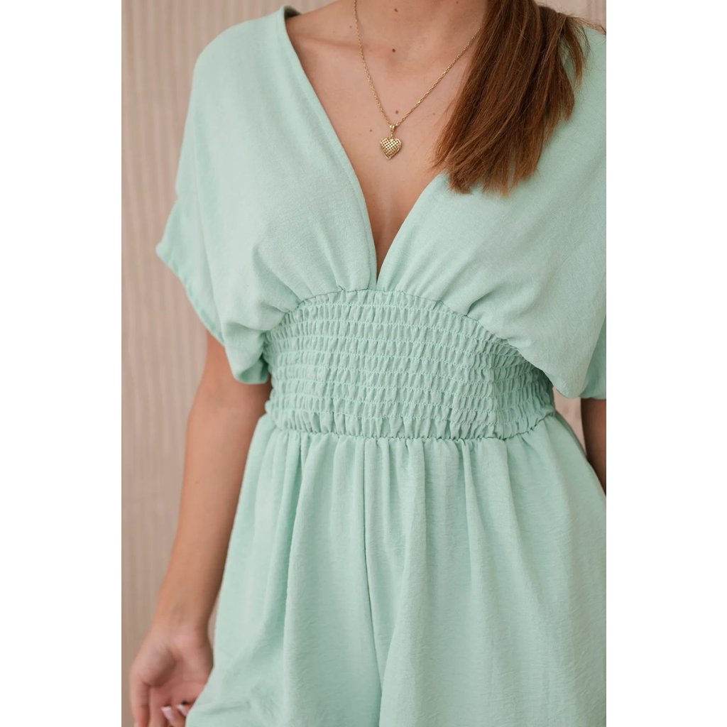 Kombinéza s volánovým pásom je jedinečný kúsok oblečenia, ktorý kombinuje eleganciu a pohodlie. Riasený pás dodáva šatám ženskú siluetu, zvýrazňuje pás a dodáva im jemný šarm. Oblek vyrobený z vysoko kvalitných materiálov zaisťuje pohodlie pri nosení a voľnosť pohybu. Tento overal je ideálny na rôzne príležitosti, od formálnych stretnutí až po neformálne výlety, a vďaka nemu budete vyzerať štýlovo a budete sa cítiť sebaisto v každej situácii. Veľkosť je univerzálna a vyhovuje ľuďom vo veľkostiach S, M a L.