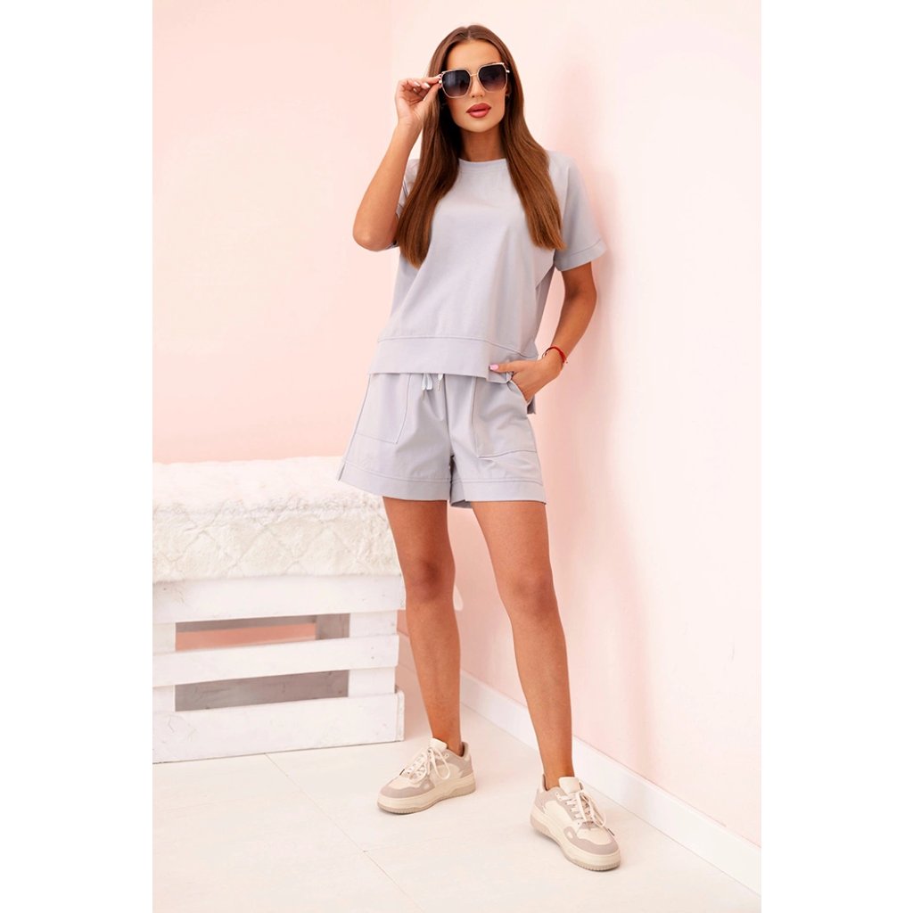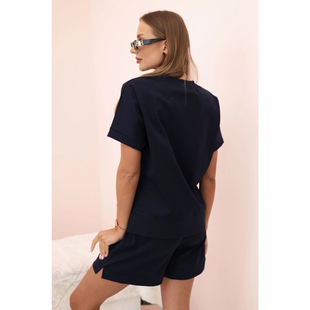Hľadáte štýlovú a zároveň pohodlnú súpravu na teplejšie dni? Tento dámsky komplet s krátkym rukávom a šortkami je ideálnou voľbou pre ženy, ktoré si cenia pohodlie a módny vzhľad. Voľný strih blúzky s predĺženým zadným dielom a elastické šortky s vysokým pásom a vreckami zaisťujú, že sa tento komplet skvele hodí ako na doma, tak aj na prechádzky alebo víkendové výlety. Materiál s prímesou elastanu zaručuje príjemné prispôsobenie postave a plnú voľnosť pohybu. Celok je ladený v ležérnom štýle, ktorý ľahko skombinujete s obľúbenými teniskami alebo sandálmi.