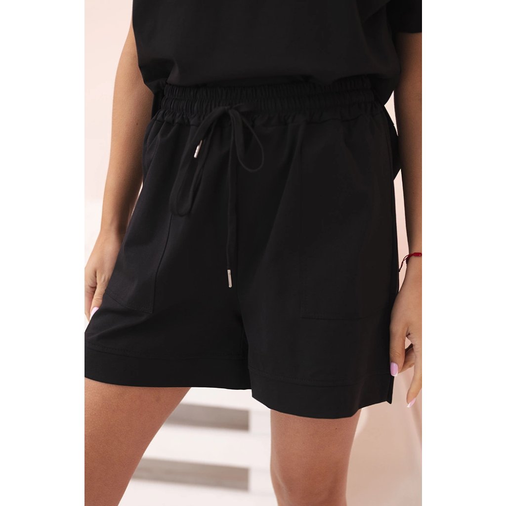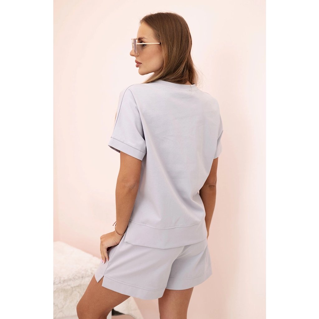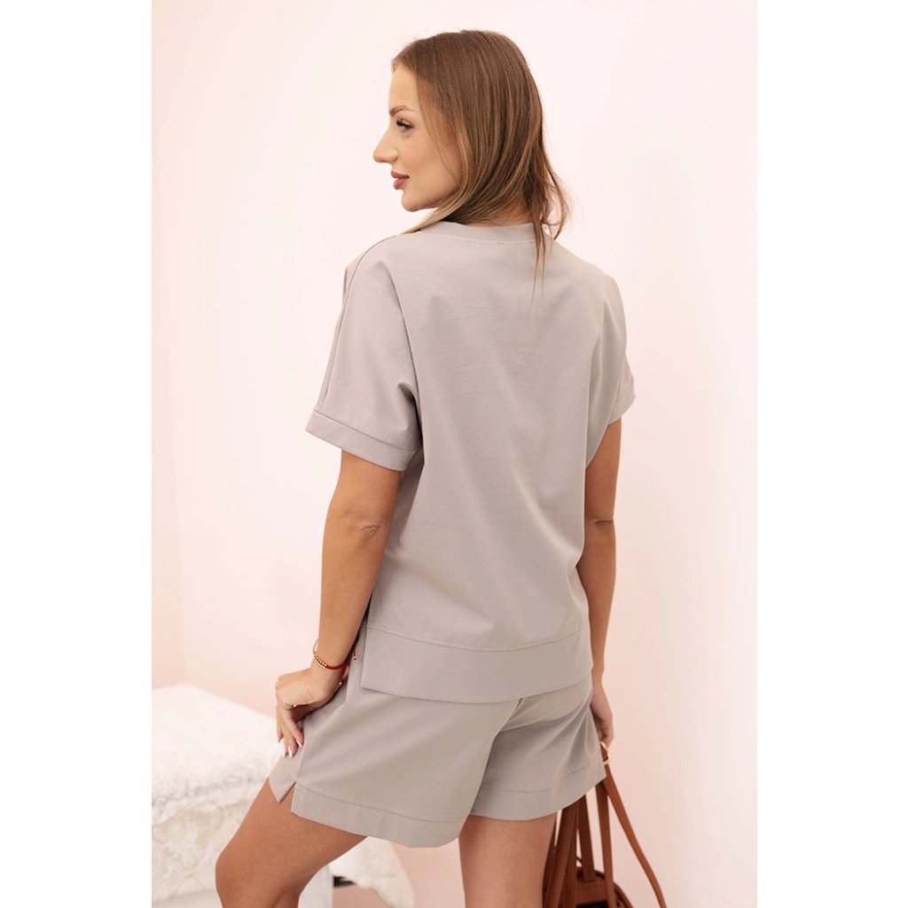 Hľadáte štýlovú a zároveň pohodlnú súpravu na teplejšie dni? Tento dámsky komplet s krátkym rukávom a šortkami je ideálnou voľbou pre ženy, ktoré si cenia pohodlie a módny vzhľad. Voľný strih blúzky s predĺženým zadným dielom a elastické šortky s vysokým pásom a vreckami zaisťujú, že sa tento komplet skvele hodí ako na doma, tak aj na prechádzky alebo víkendové výlety. Materiál s prímesou elastanu zaručuje príjemné prispôsobenie postave a plnú voľnosť pohybu. Celok je ladený v ležérnom štýle, ktorý ľahko skombinujete s obľúbenými teniskami alebo sandálmi.
