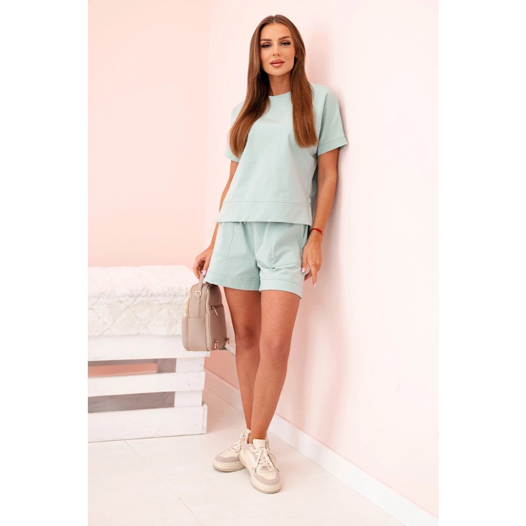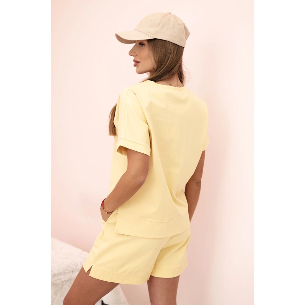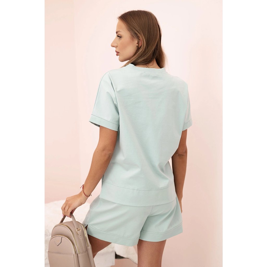 Hľadáte štýlovú a zároveň pohodlnú súpravu na teplejšie dni? Tento dámsky komplet s krátkym rukávom a šortkami je ideálnou voľbou pre ženy, ktoré si cenia pohodlie a módny vzhľad. Voľný strih blúzky s predĺženým zadným dielom a elastické šortky s vysokým pásom a vreckami zaisťujú, že sa tento komplet skvele hodí ako na doma, tak aj na prechádzky alebo víkendové výlety. Materiál s prímesou elastanu zaručuje príjemné prispôsobenie postave a plnú voľnosť pohybu. Celok je ladený v ležérnom štýle, ktorý ľahko skombinujete s obľúbenými teniskami alebo sandálmi.