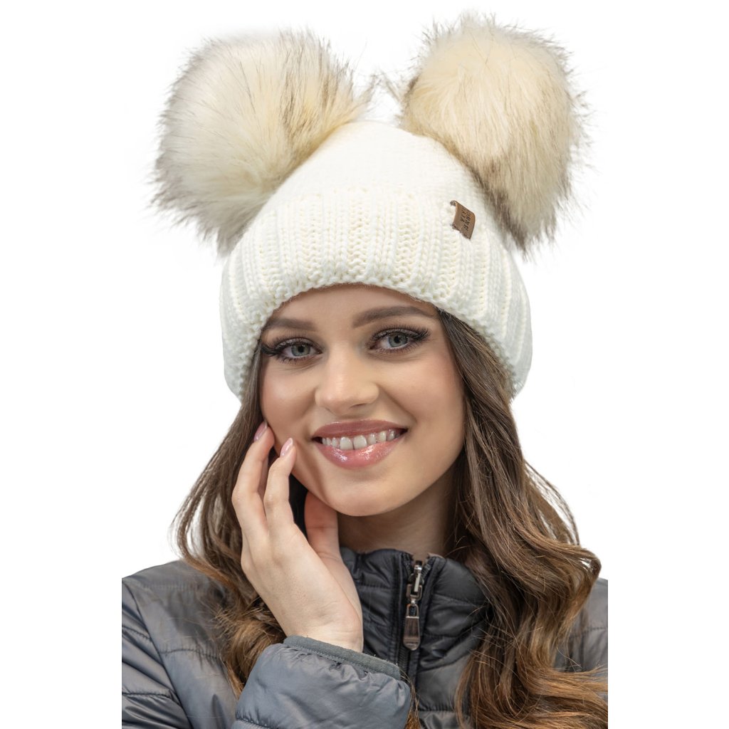 klobúk je zdobený dvoma veľkými bambuľkami z organických vlákien