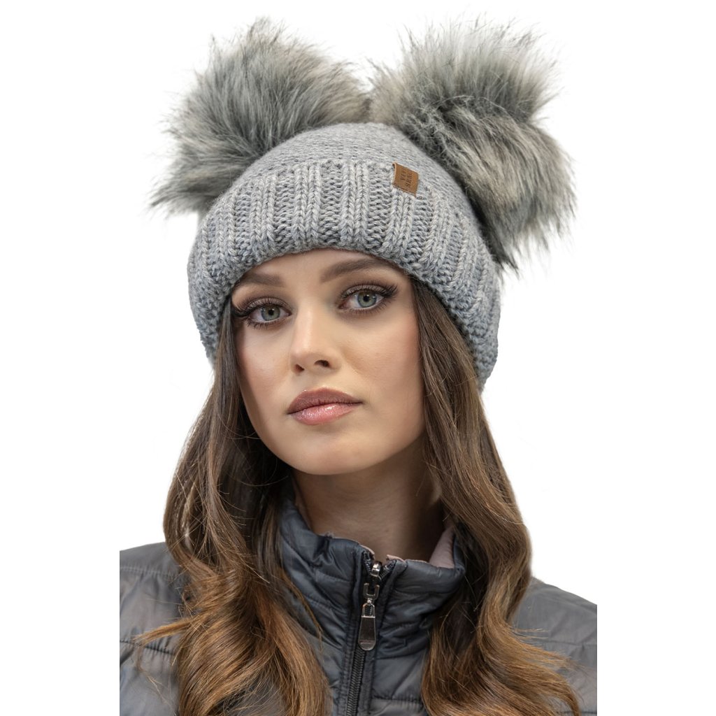 klobúk je zdobený dvoma veľkými bambuľkami z organických vlákien