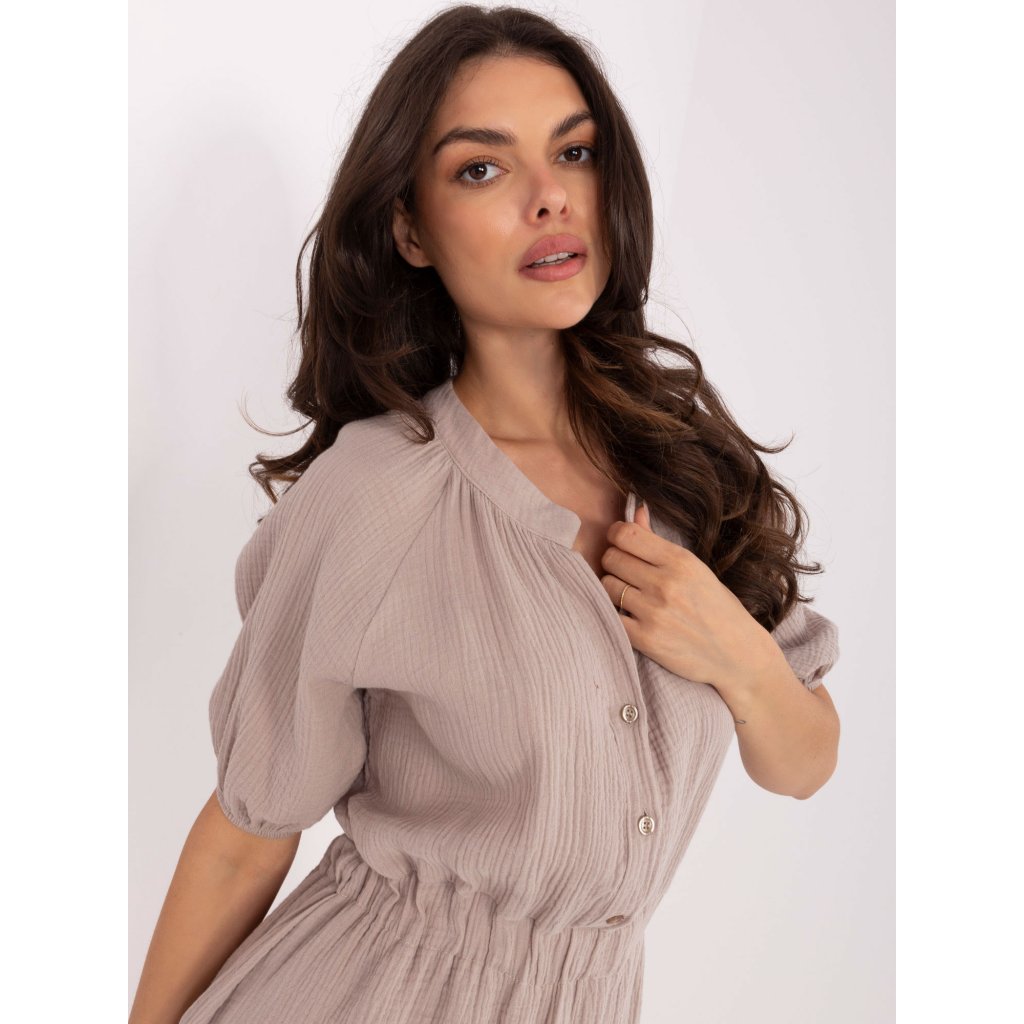 Modelka má na sebe veľkosť 1. Miery modelky: výška 176 cm, obvod hrudníka 90 cm, pás 62 cm, boky 94 cm.