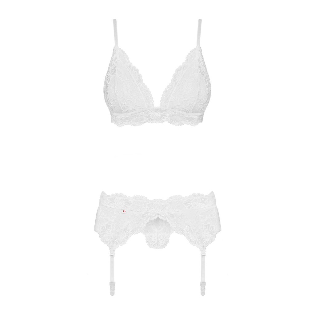 810-SEG-2Pozdrav, kráska! Chcete, aby vaše sexy telo zdobila jemná a čistá dokonalosť? Obsessive Otvorte škatuľu a nájdete ju vo vnútri! Každý kúsok tejto súpravy si zamilujete. Bol vytvorený, aby vám prinášal fantastické zážitky! No, nie je na čo čakať. Oblečte si ho, pridajte zmyselné pančuchy (neuveriteľne horúci vzhľad je zaručený!) A ten pocit? Úžasný!Viac informácií? Tu sú:- zvodná biela súprava s podväzkami- podprsenka s nastaviteľnými ramienkami a nastaviteľným zapínaním - perfektne sedí- vystužené košíčky podprsenky zvýrazňujú poprsie- množstvo očarujúcich čipkových ozdôb- biele tangá - sexy zadoček- mäkká, elastická tkanina (90 % polyamid, 10 % elastan)Dodatočné parametre