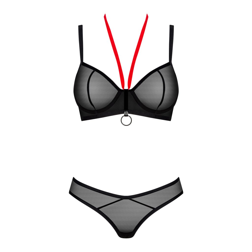Dvojdielna súprava GlandezTúžite po vášnivých chvíľach, absolútnej istote a nespútanej elegancii? Obsessive Vstúpte do spálne v tejto očarujúcej spodnej bielizni Glandez a budete sa cítiť ako skutočná kráľovná. Priehľadný materiál, minimalistický dizajn, kontrastná čierna a červená, to všetko a ešte viac vytvára magický kľúč do ríše rozkoše, takže vstúpte.MatSpoznajte viac detailov:Glandez set: tangá a podprsenka viacstupňové zapínanie a nastaviteľné ramienka - perfektne sediakostky v košíčkochčervený pásik za krk lesklý prívesokpríjemná elastická tkanina a zamatové detailypohodlie, komfort a kvalitazloženie materiálu: 94% polyamid, 6% elastanDodatočné parametre