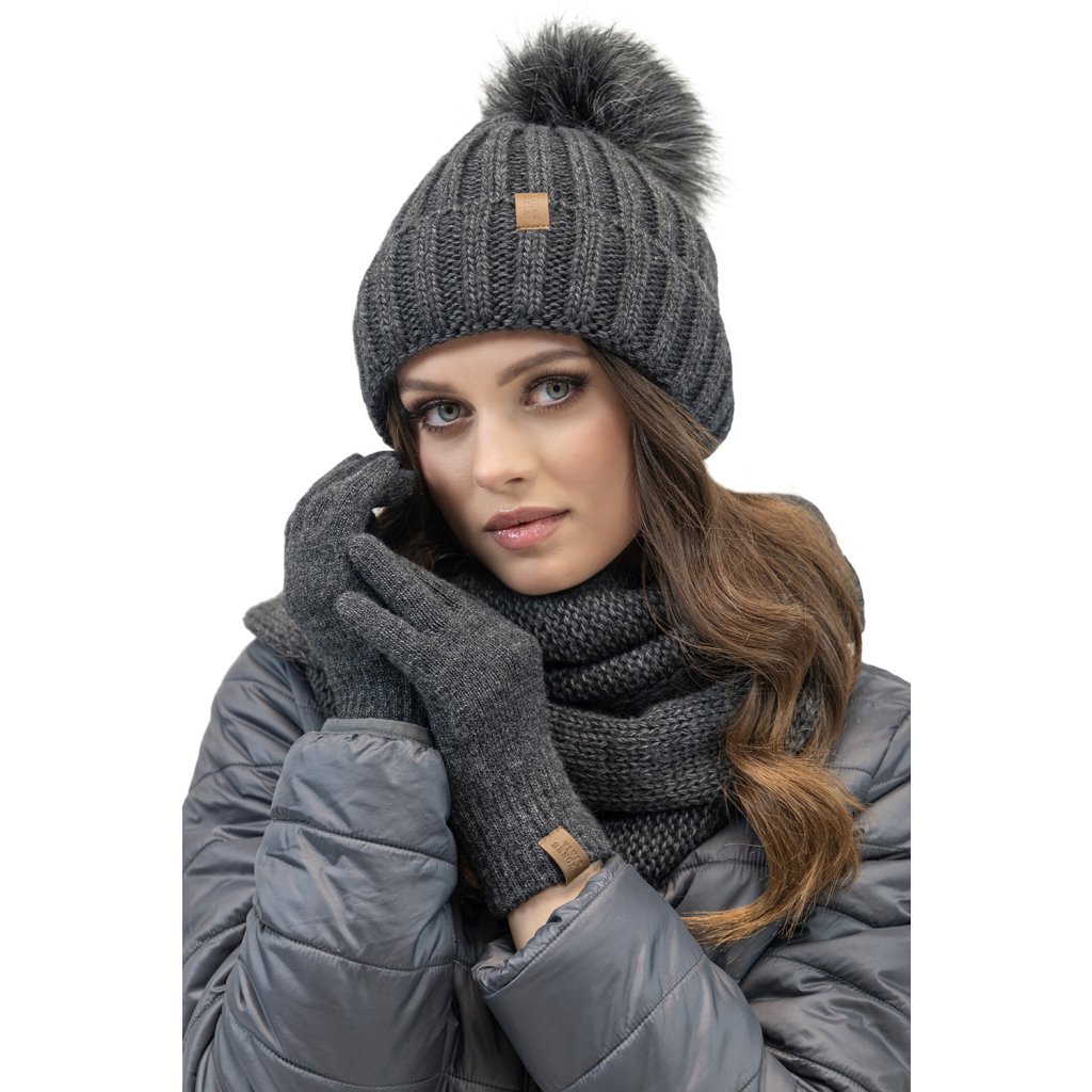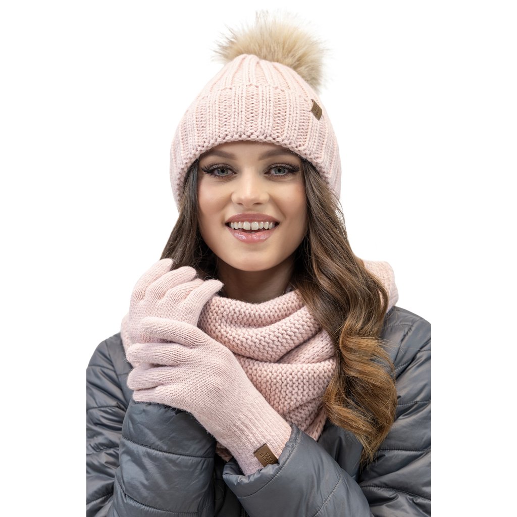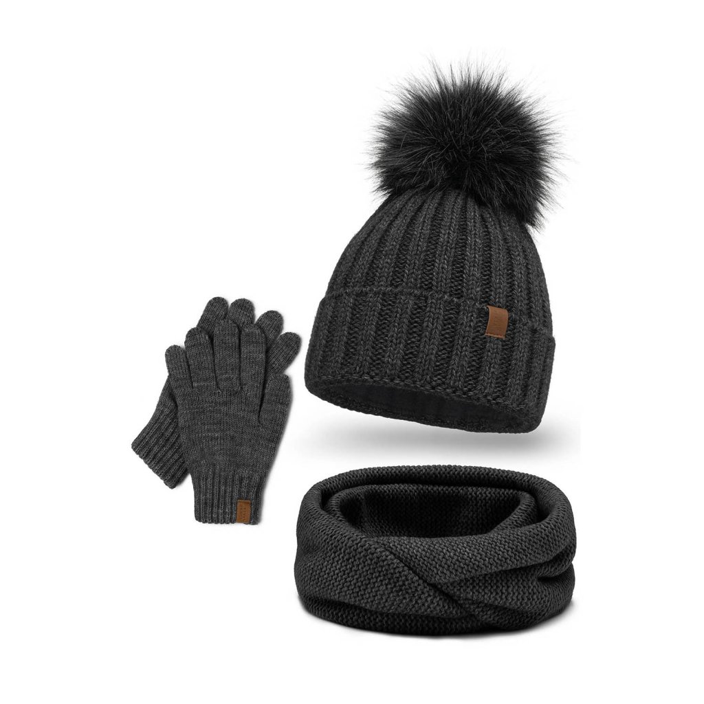 Módny set: čiapka s bambulou, šál a rukavice.Čiapka: