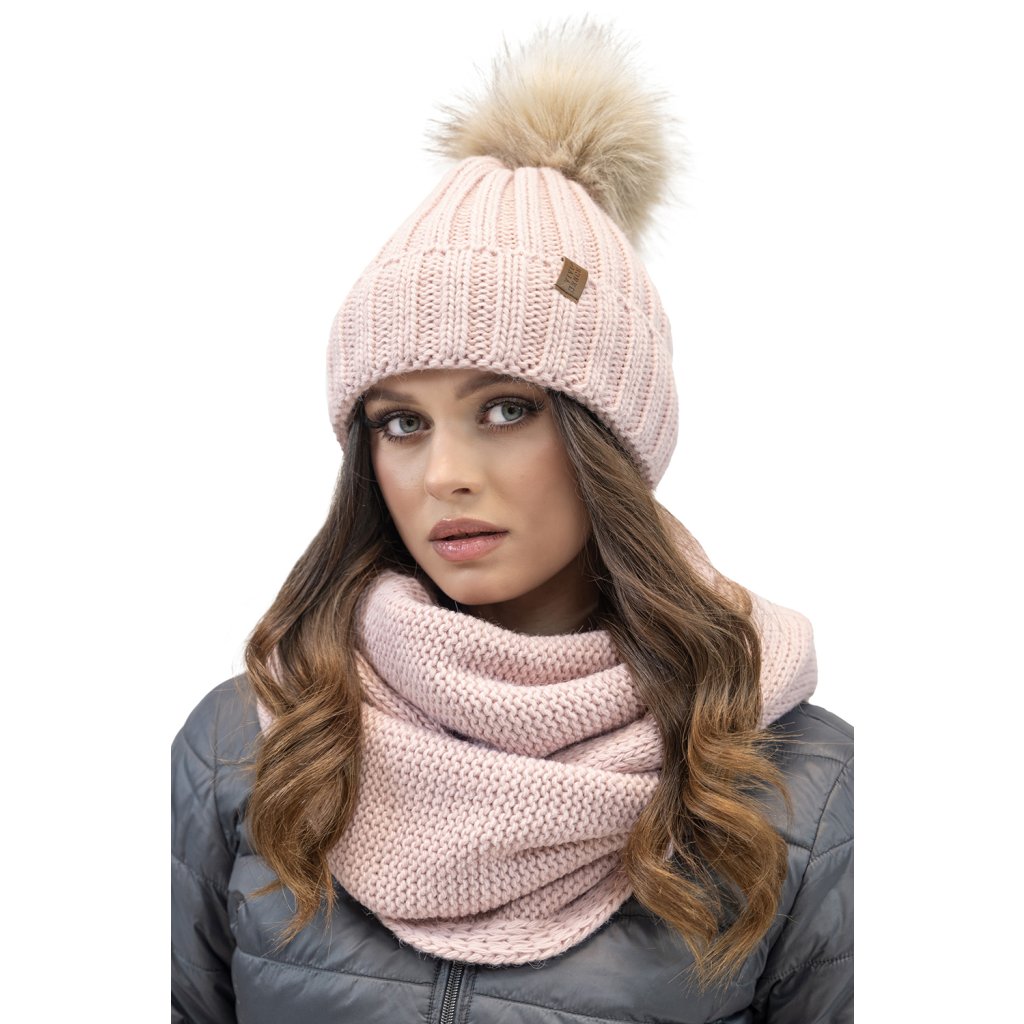 Módny set: čiapka s bambulou a šál.Čiapka: