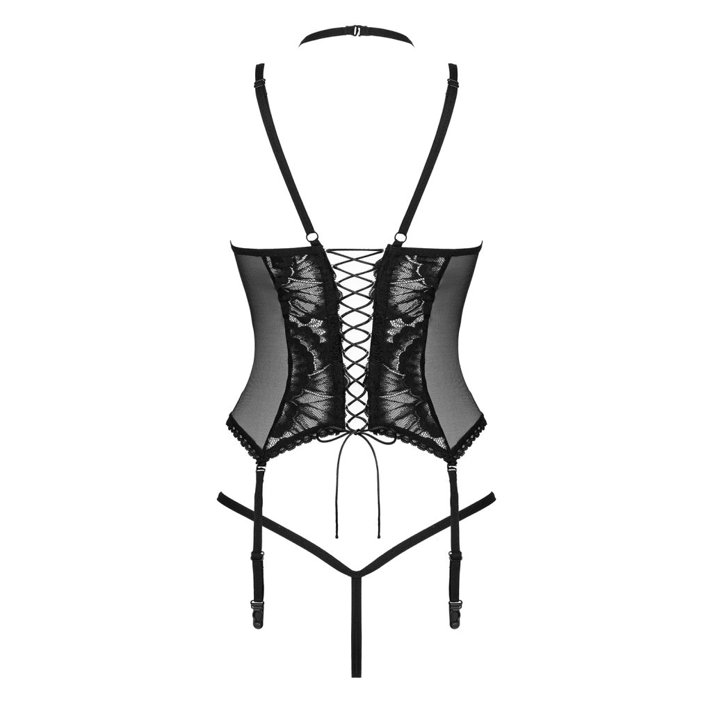 Korzet AlessyaTento jedinečný korzet v čiernej farbe dokáže rozprúdiť fantáziu! Jedinečný, sexi strih je fantastickým spôsobom, ako zvýrazniť ženské tvary, a elegantná čipka dodáva eleganciu a štýl. Len sa pozrite na tie šťavnaté remienky! Tak zmyselné a sexy, však? Zakryte svoje telo týmto fenomenálnym korzetom z kolekcie Alessya a presvedčte sa, že ste skutočná zvodkyňa.Zoznámte sa so všetkými podrobnosťami:- vyzkoušajte si korzet a tangá Alessya- sexy strih - krásne zvýraznené tvary- jedinečný výstrih zdobený stuhami a šperkovými prvkami v podobe krúžkov - priťahuje pozornosť- podprsenka s kosticami - fenomenálny vzhľad poprsia a dokonalá podpora- zvislé kostice od línie bokov až po podprsenku - zoštíhľujú postavu a zaručujú dokonalé prispôsobenie- nastaviteľné ramienka a podväzky - pohodlné nosenie- priliehavé šnurovanie na chrbte - zvodné a umožňuje prispôsobiť spodnú bielizeň tvaru tela- klasika, ženská čipka s kvetinovým vzorom - elegancia a šik- zmyselné čierne tangá v súprave- na dotyk jemný a elastický materiál (90 % polyamid, 10 % elastan)Dodatočné parametre