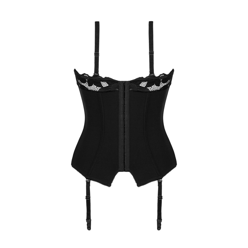 Mimoriadne štýlový čierny korzet z kolekcie Editya má veľmi zmyselný a ženský dizajn. Zvislé veľrybie kostice dokonale zvýrazňujú siluetu a mierne priehľadné mäkké košíčky podprsenky krásne odhaľujú poprsie. Pohodlné zapínanie na chrbte po celej dĺžke korzetu umožňuje dokonalé prispôsobenie a dodáva eleganciu.Preskúmajte viac detailov:- Elegantný korzet Editya- Mäkké, čipkované košíčky - Perfektný strih a krásny vzhľad poprsia- Zvislé veľrybie kostice pozdĺž siluety - Opticky zoštíhľujú telo.- Nastaviteľné podväzkové pásy - Nastaviteľný strih- Zapínanie na háčik a slučku na chrbte - Komfort a pohodlie pri nosení- Odnímateľné podväzkové pásy- Nohavičky nie sú súčasťou baleniaZloženie: 85% polyamid, 15% elastanDodatočné parametre