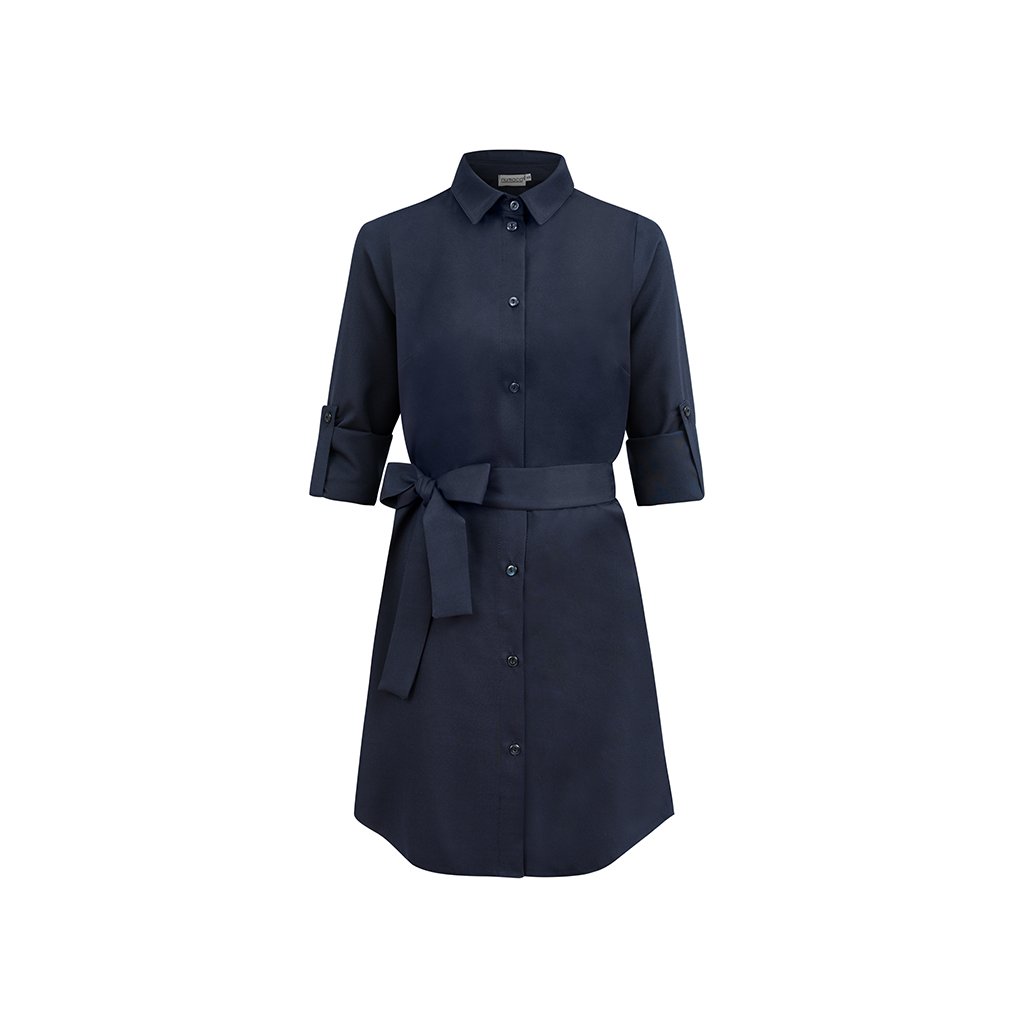 Košeľové šaty s gombíkmi rozopínanými ku dnu - námornícka modrá. Môžete ho tiež nosiť ako kabát. Vyrobené z príjemného na dotyk, nie príliš pružného materiálu (95% polyester, 5% elastan). Mark Numoco.