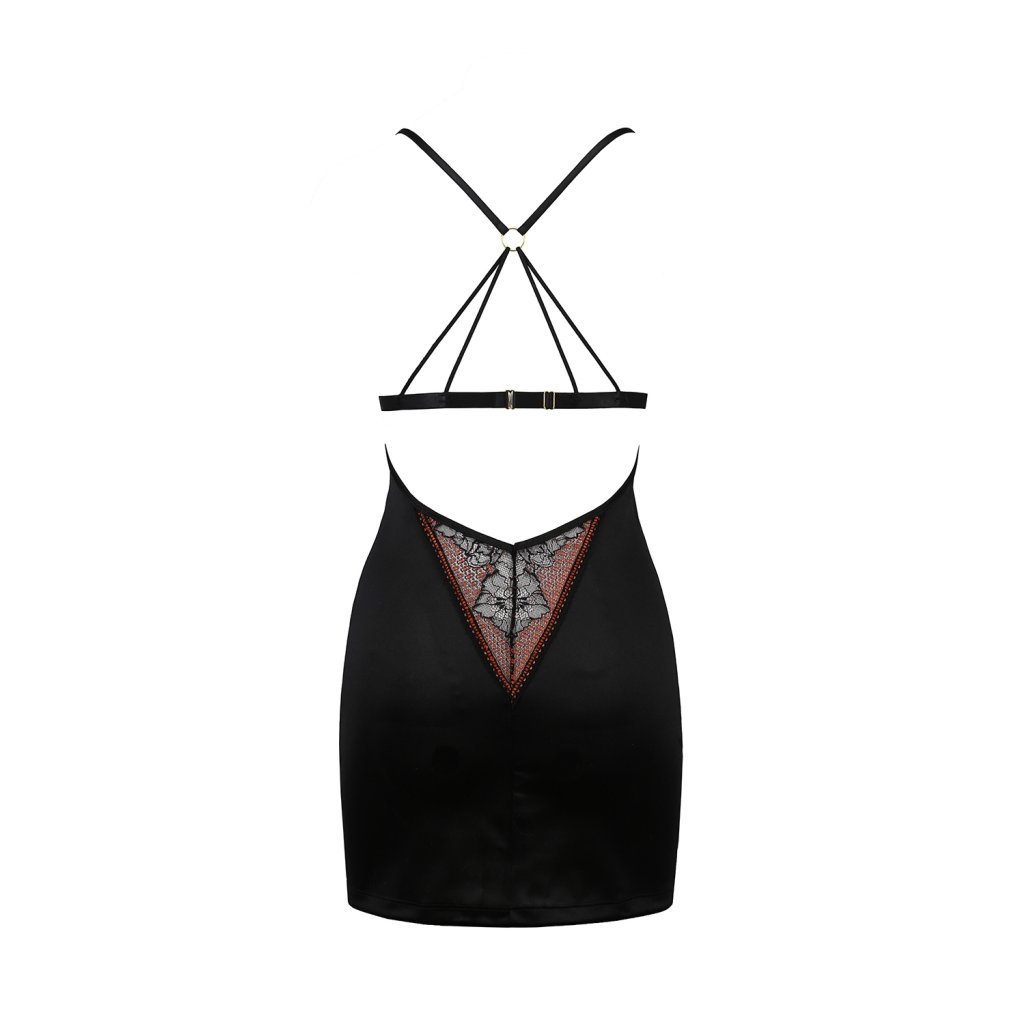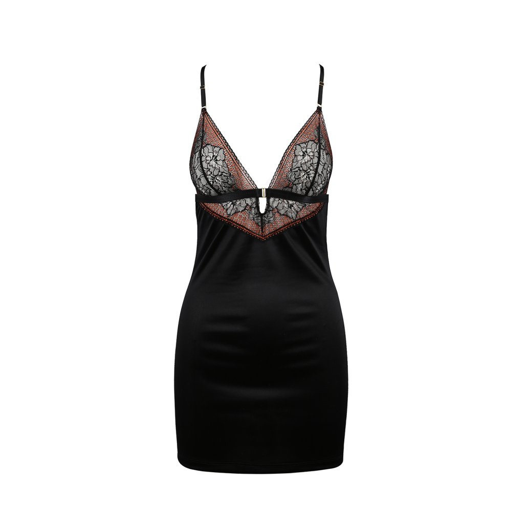 Nočná košieľka Casmir. Model košieľky Mirella. Vyrobené z 85% polyamidu, 8% elastanu, 7% polyesteru. Zapínanie: vzadu. Nočná košieľka sa zapína na háčik. Má kostice, ktoré podopierajú prsia a správne ich tvarujú. Výrobok má nastaviteľné popruhy. Dĺžka: mini. Bedrové nohavičky. Dámsky produkt.Dodatočné parametre