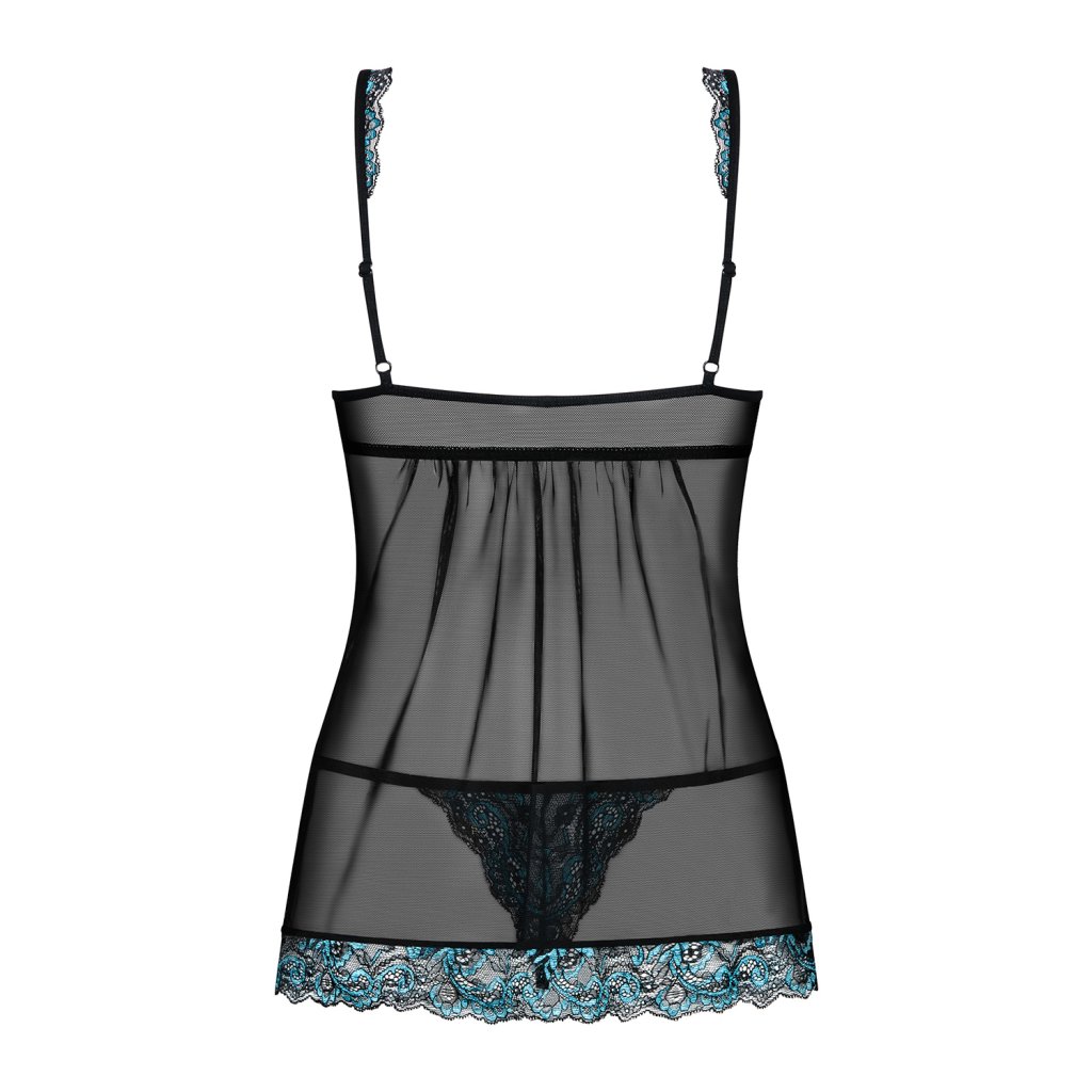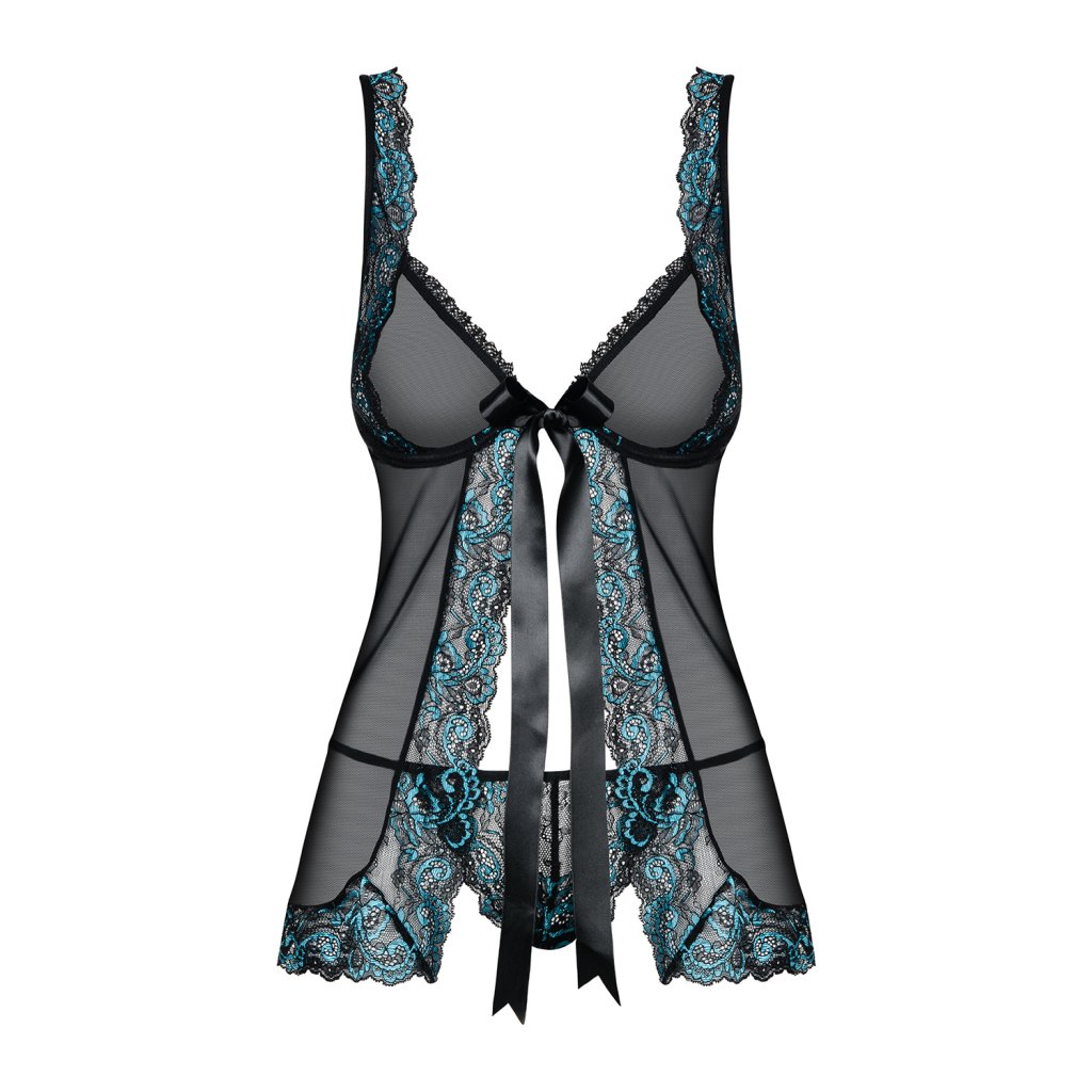 Rozkošná detská košieľka v intenzívnej tyrkysovej farbe Amanta babydoll Obsessive- priesvitná sieťovina v kombinácii s čipkou, zdobená lesklou niťou
