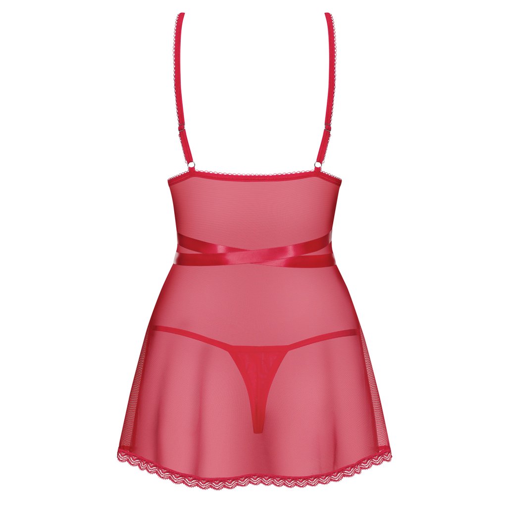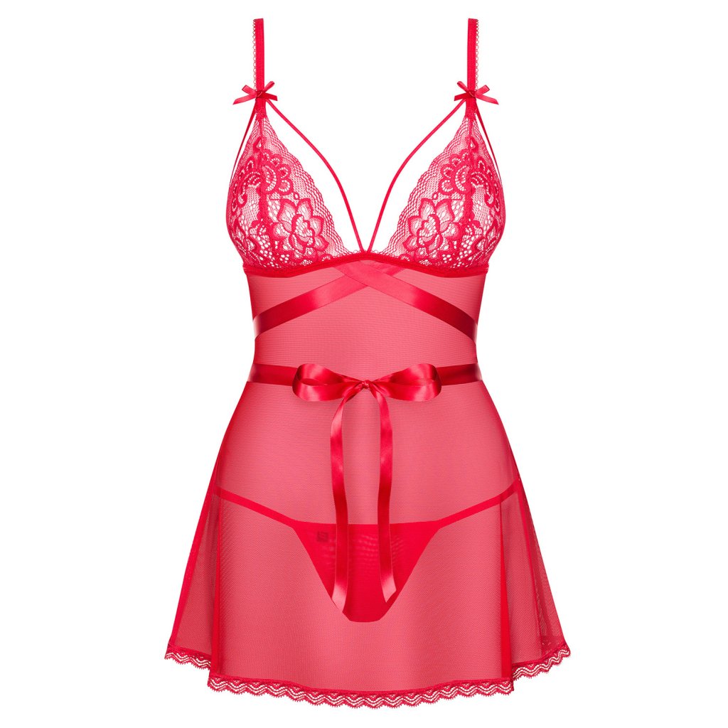 Lovlea košilka Ještě více informací: božská červená – díky této barvě všichni červenají! nastavitelná ramínka - upravte délku odhalené partie hýždě - rozkoš je blíž, než si myslíte krajkový top s ozdobnými pásky a mašličkami stužka v pase -Dodatočné parametre