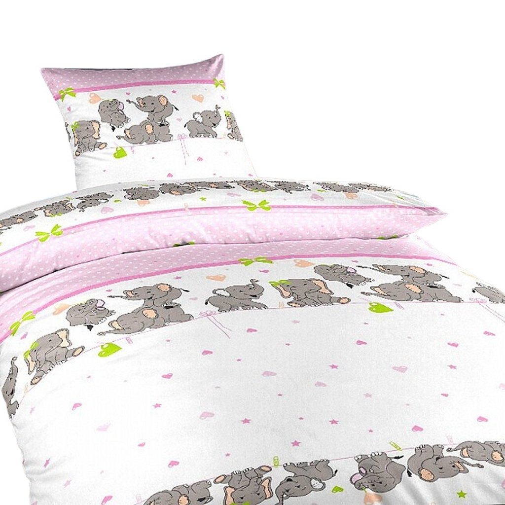 Krepová posteľná bielizeň do detskej postieľky Slony ružová 90x130, 45x60 cm