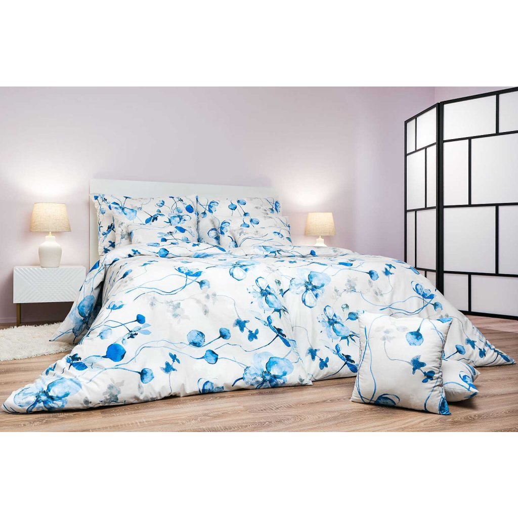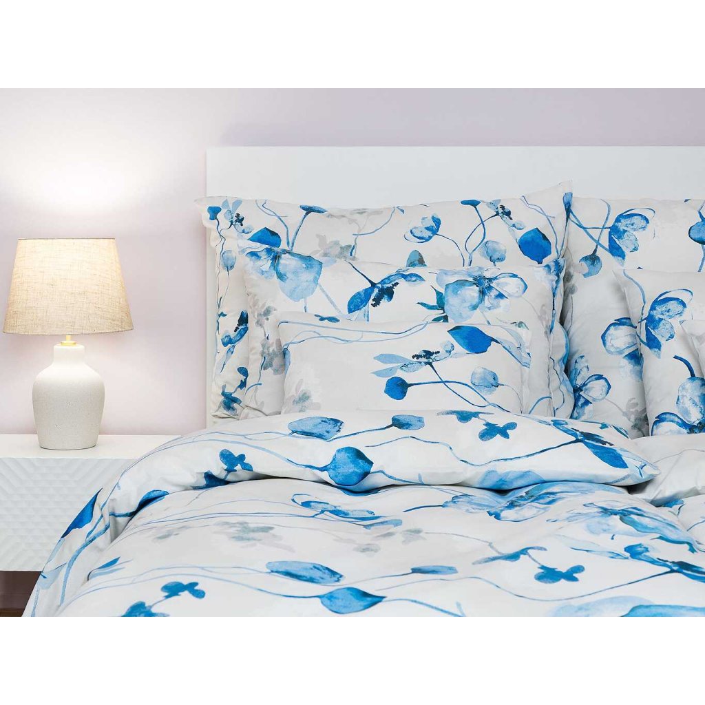 Luxusné posteľné prádlo Bloom elegance banán s moderným kvetinovým motívom v modrých tónoch na svetlom podklade prináša do spálne eleganciu a sviežosť. Najlepšie vynikne v kombinácii s plachtou vo farbe kráľovsky modrá, denim, biela, sivá alebo strieborná. Vyrobené v Českej republike firmou DADKA VRACOV.
