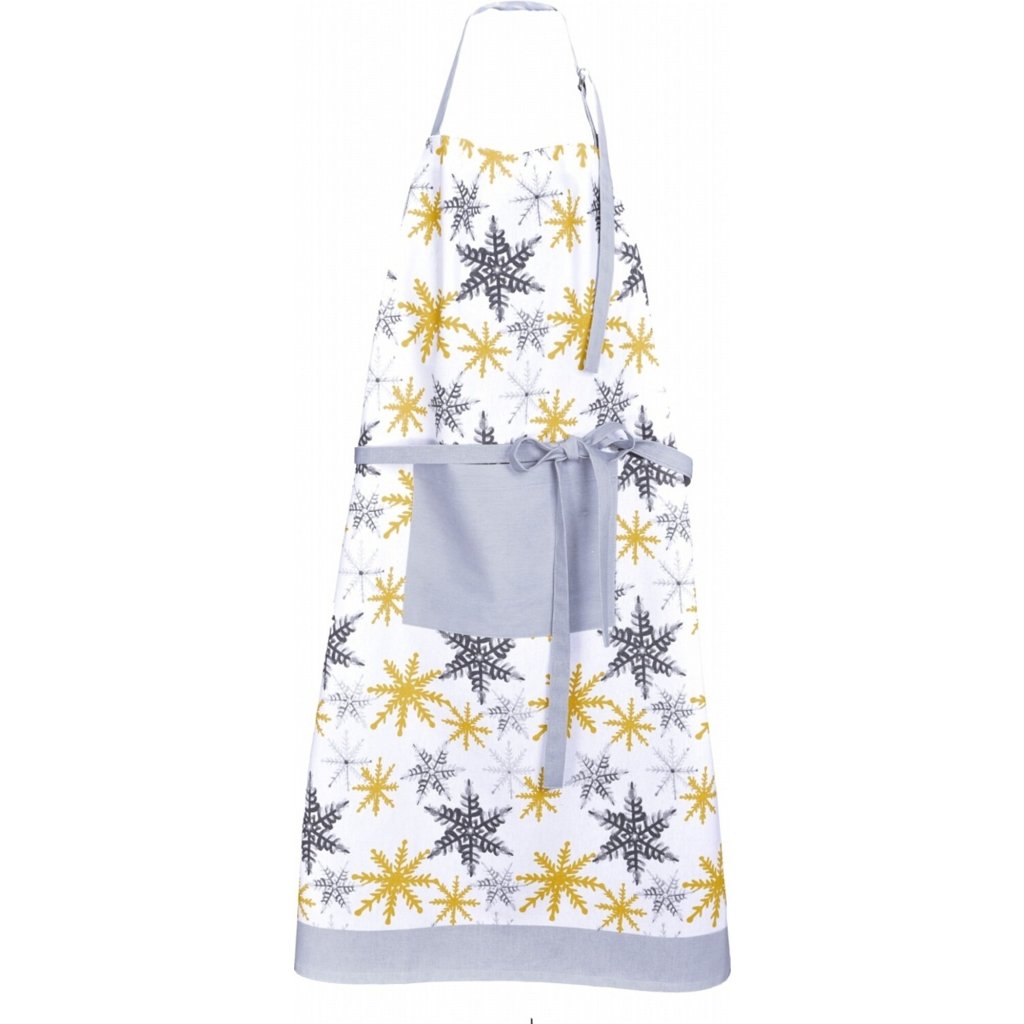 Názov: Kuchynská vianočná zástera Sivé a žlté vločkys 1261.