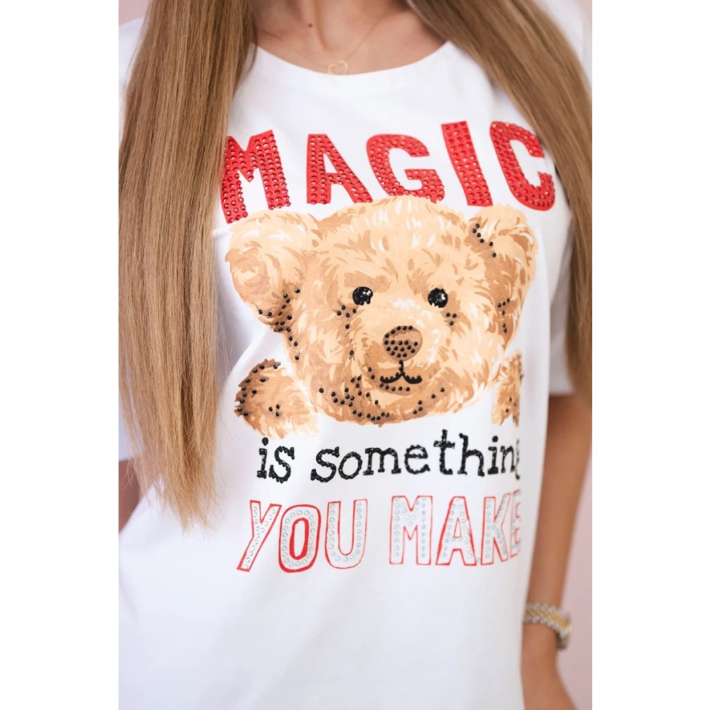 Predstavujeme vám módnu blúzku. Blúzka s potlačou. Veľmi módny dizajn a strih pre dokonalý štýl. Blúzka je vyrobená z kvalitného materiálu. Veľkosť je univerzálna a vyhovuje dámam, ktoré nosia veľkosť S, M alebo L.
