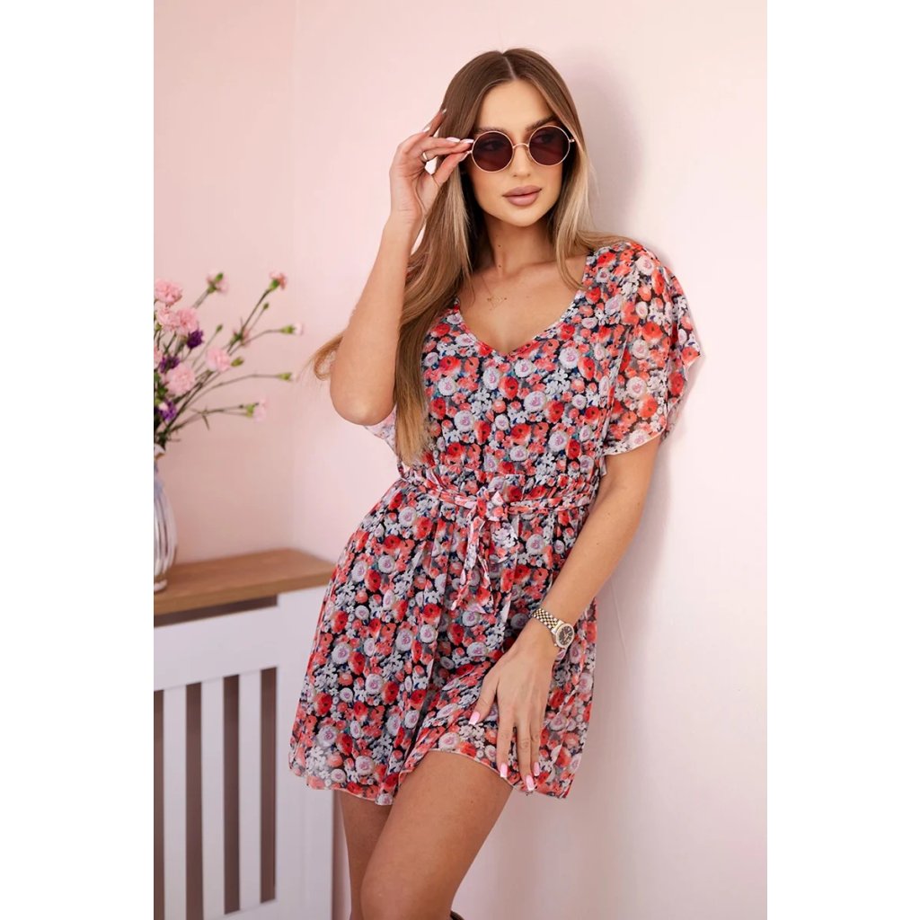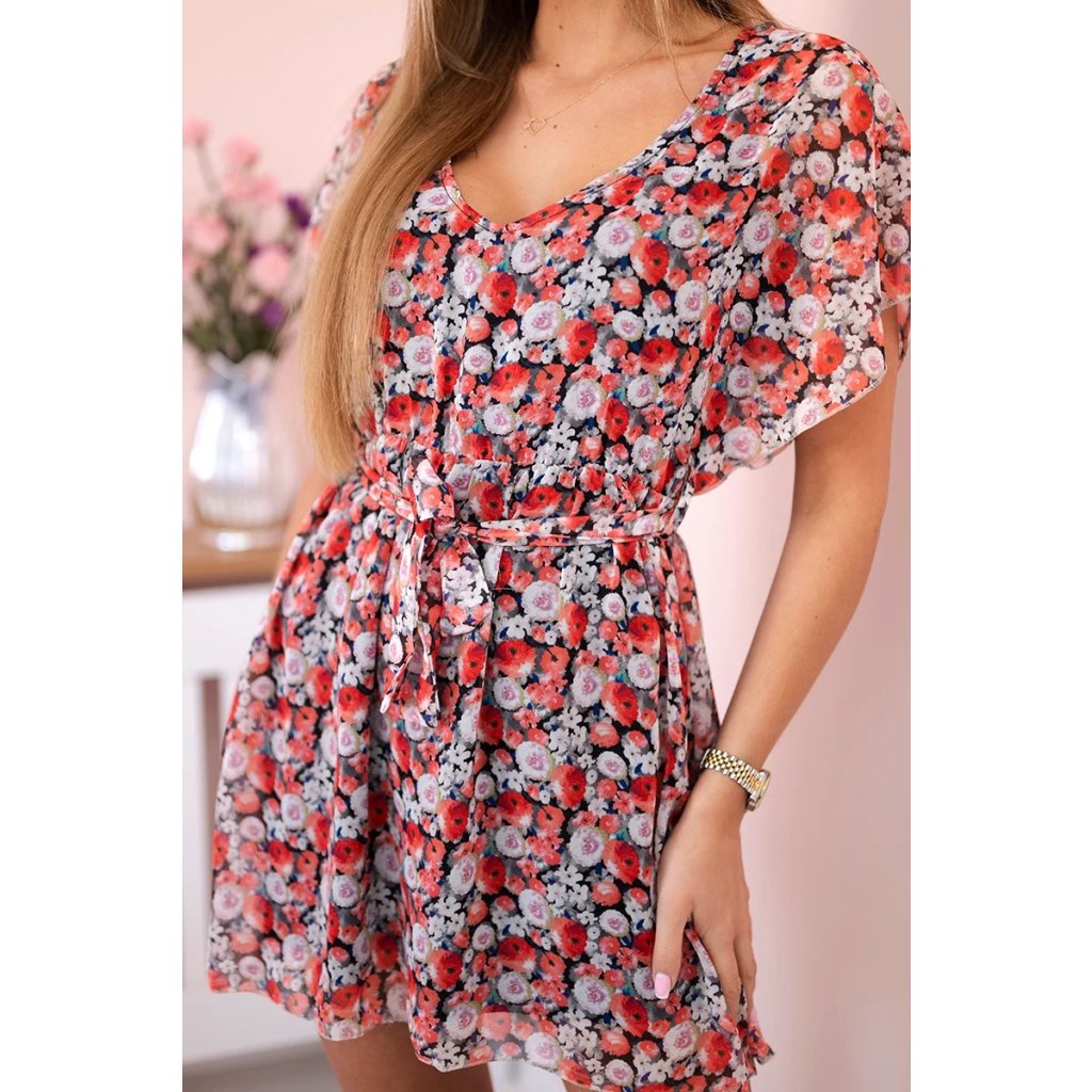 Predstavujeme pohodlné kvetinové šaty. Šaty so zaväzovaním v páse a výstrihom do V. Veľmi módny strih. Šaty sú vyrobené z kvalitného materiálu. Veľkosť je univerzálna a vyhovuje dámam, ktoré nosia veľkosť S, M alebo L.