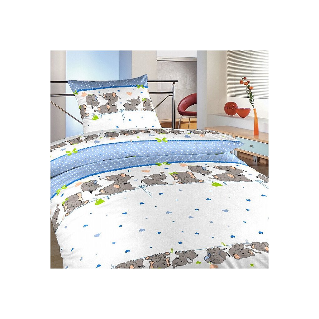 Detská posteľná bielizeň bavlna krep Sloni denim 140x200 cm + 70x90 cm