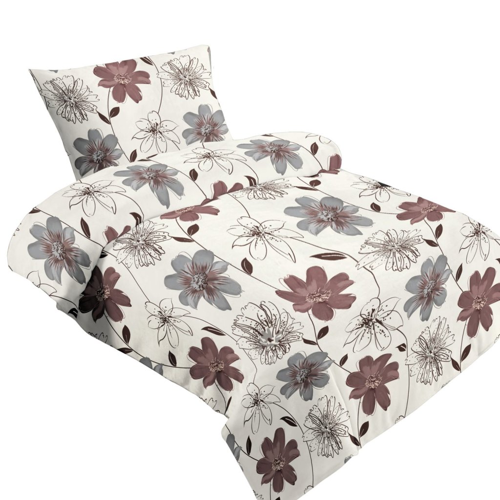 Ľanové plátno vrátane mikroflanelu Hnedý kvet 140x200, 70x90 cm