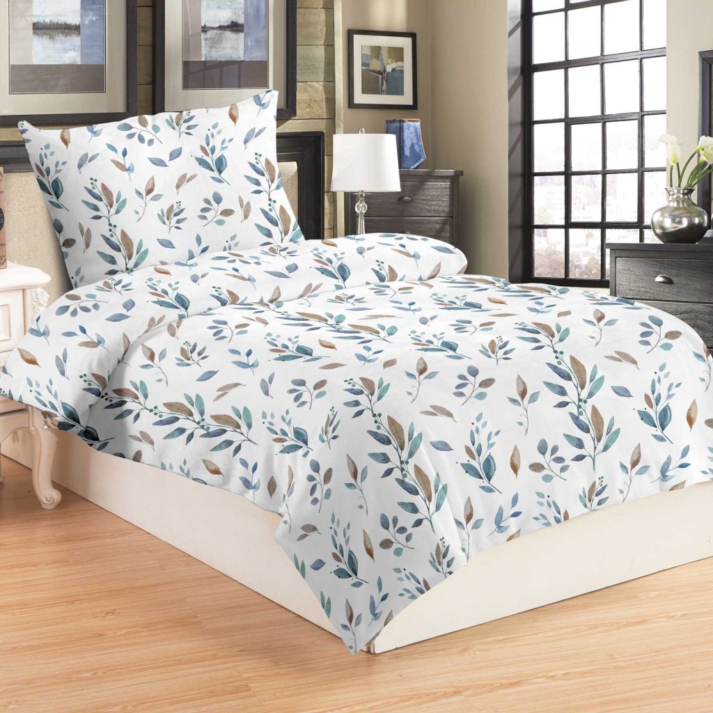 Ľanové plátno vrátane mikroflanelu Sivé a modré vetvičky 140x200, 70x90 cm