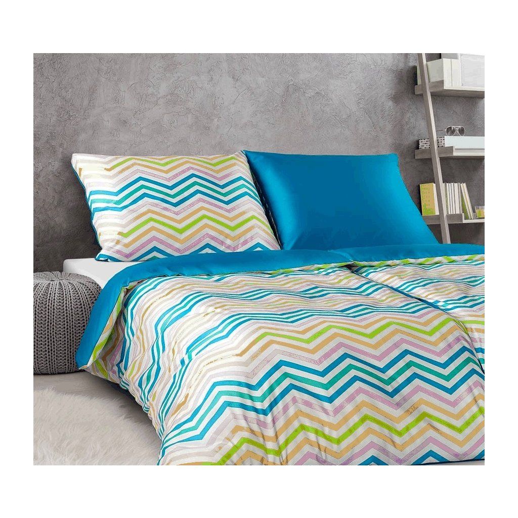 Saténová posteľná bielizeň Zigzag stripes multicolor - modrá je ideálnou voľbou do moderných a minimalistických interiérov. Skvele sa hodí k obliečkam v bielej, modrej, sivej alebo tyrkysovej farbe.