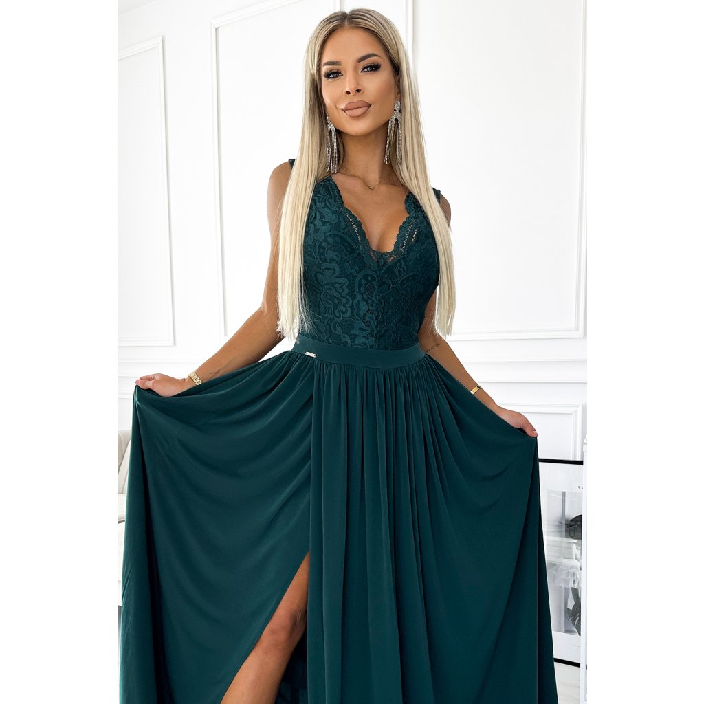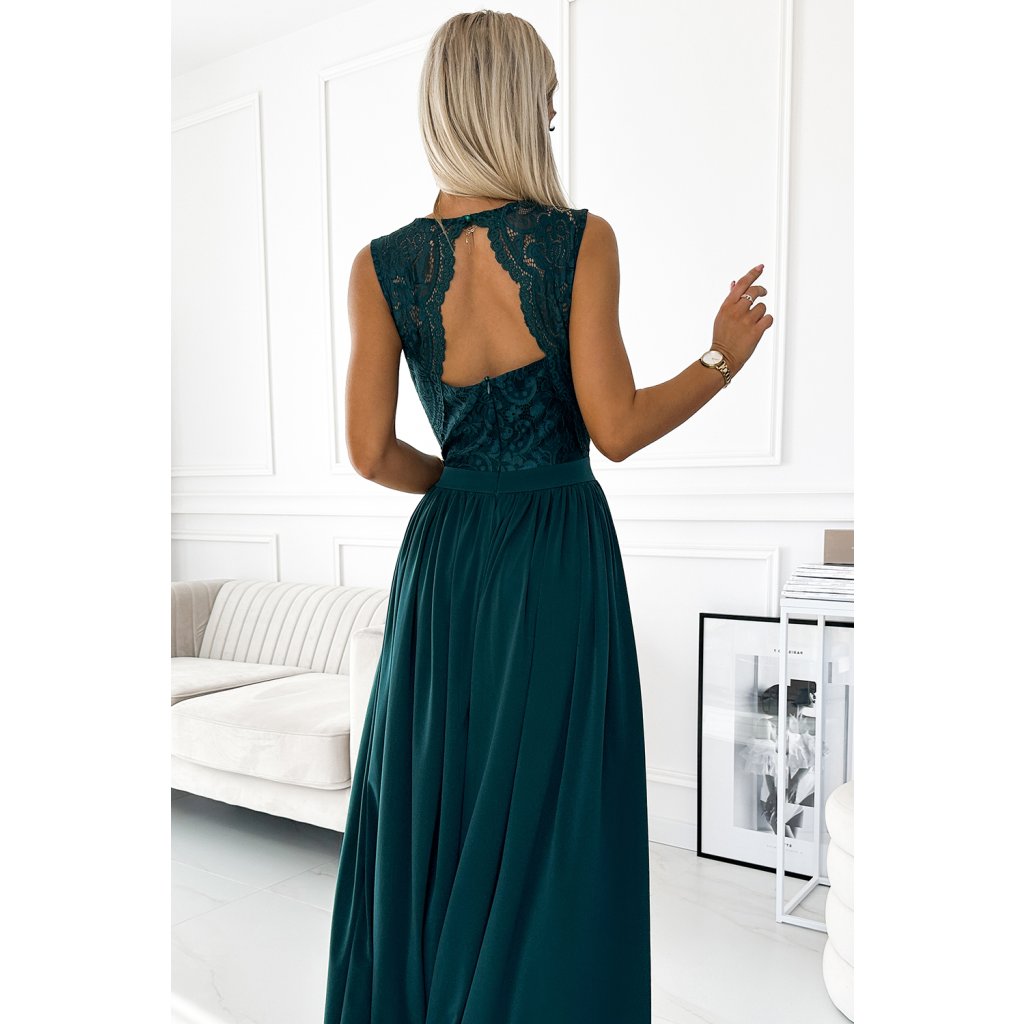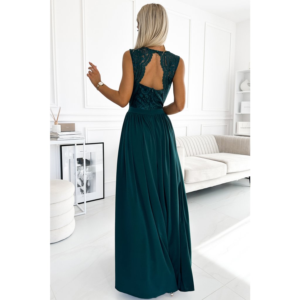 Numoco LEA dlhé šaty s čipkovaným výstrihom - zelené 211-6
