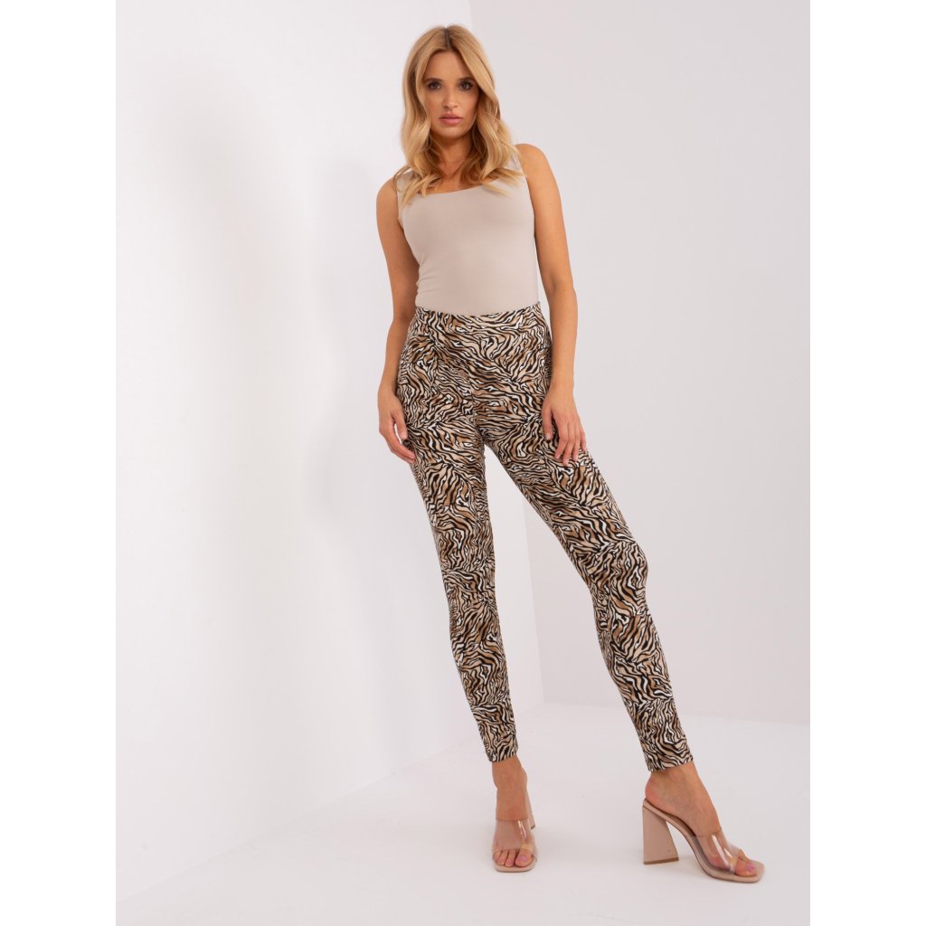 Béžovo-čierne legíny na každodenné nosenie so zvieracou potlačou.zloženie materiálu: 90% viskóza, 10% elastan