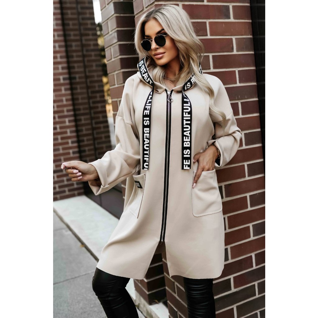Ležérny kabát s vreckami a kapucňou - béžový 632-1