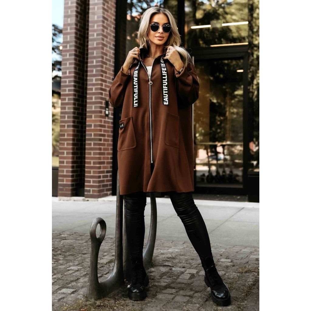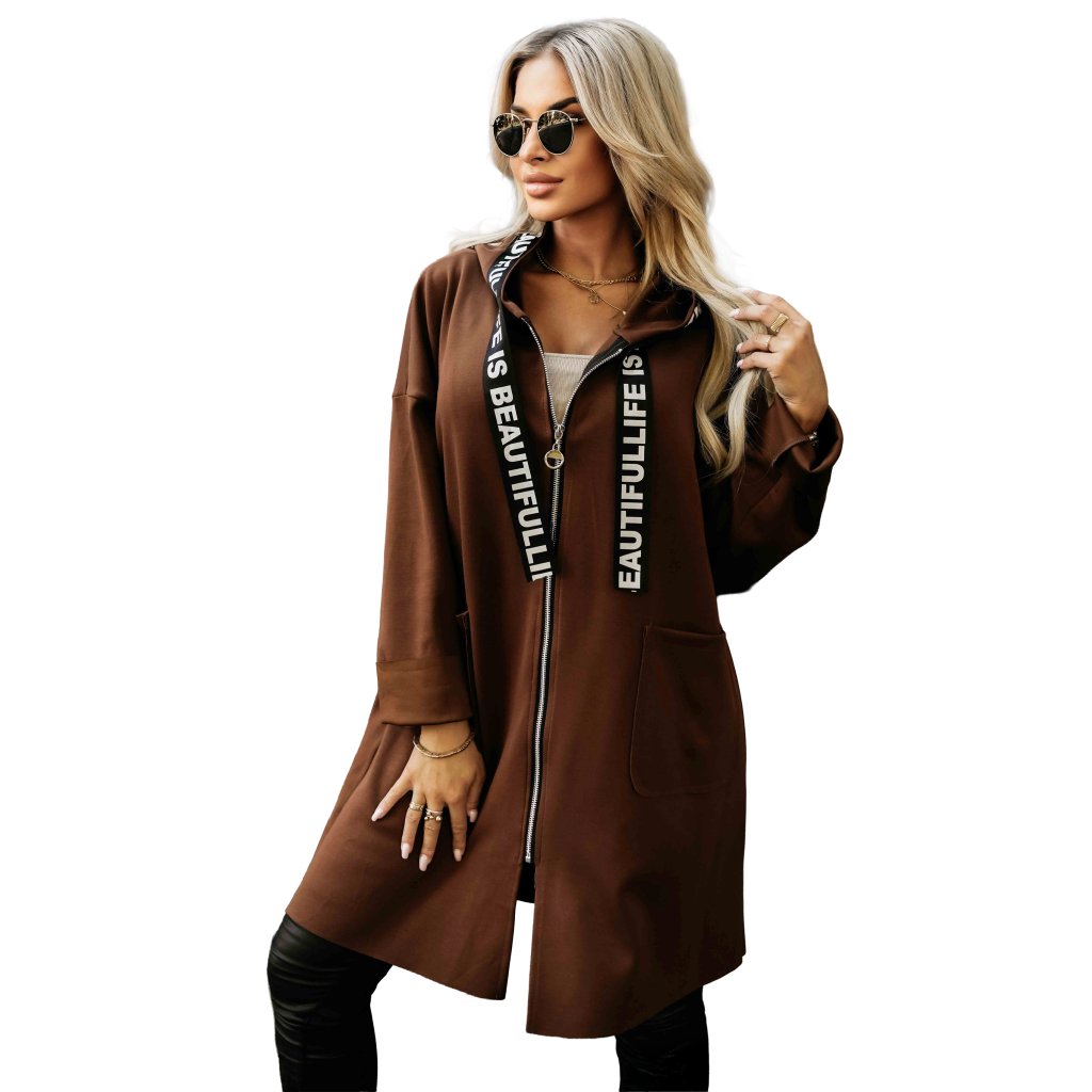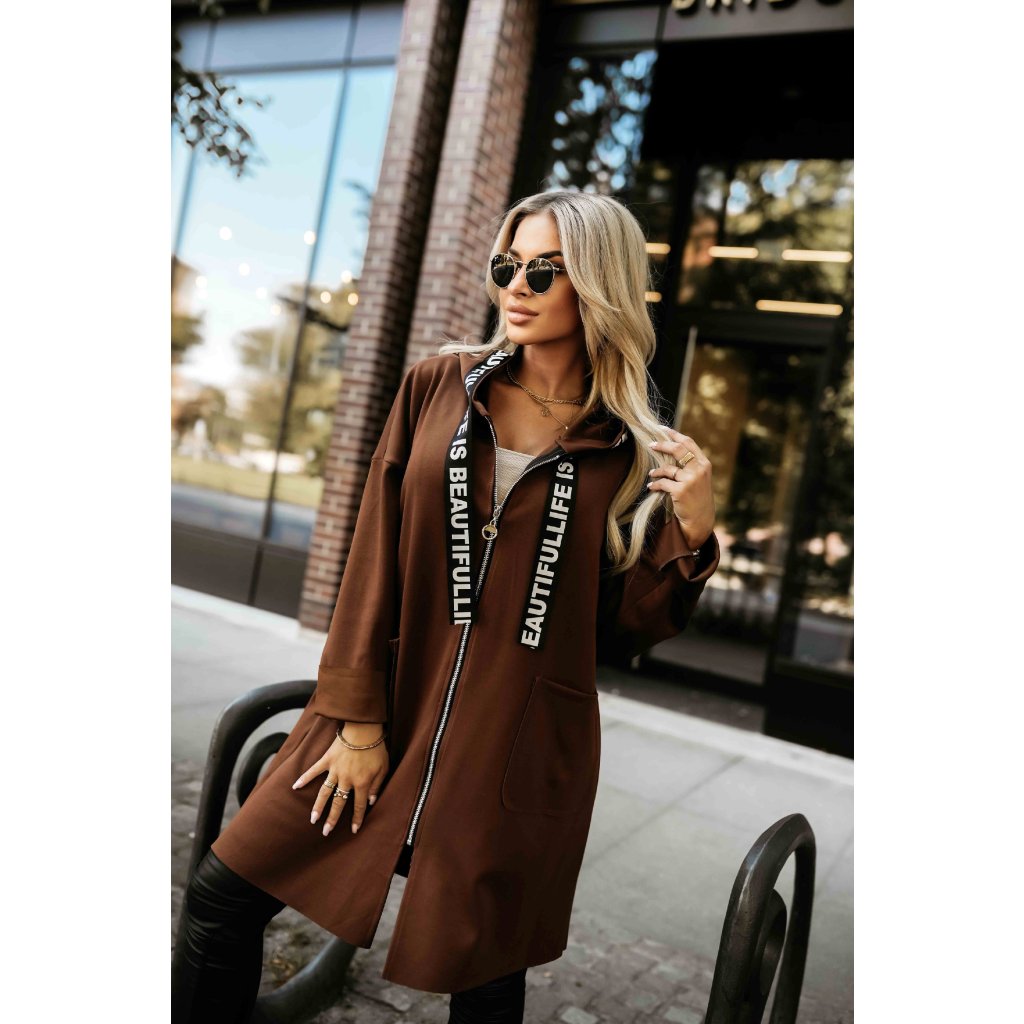 Ležérny kabát so zipsom a módnymi detailmi - čokoládový 632-2