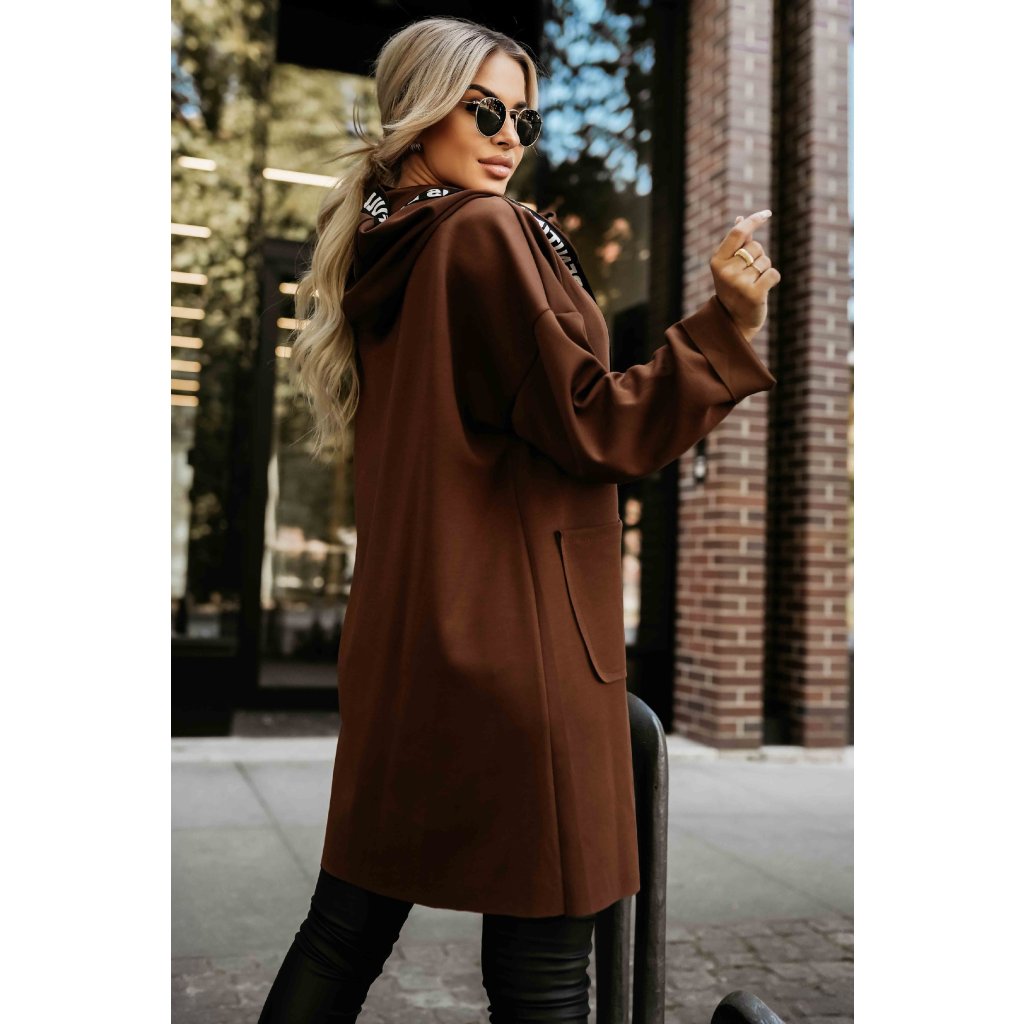 Štýlový dámsky kabát od Numoco Basic v čokoládovo hnedej farbe. Vyrobený z mäkkého, príjemného materiálu, je ideálny pre chladnejšie dni. Voľný strih s kapucňou a praktickými vreckami zaisťuje pohodlie a módny vzhľad. Vyrobené v Európe.