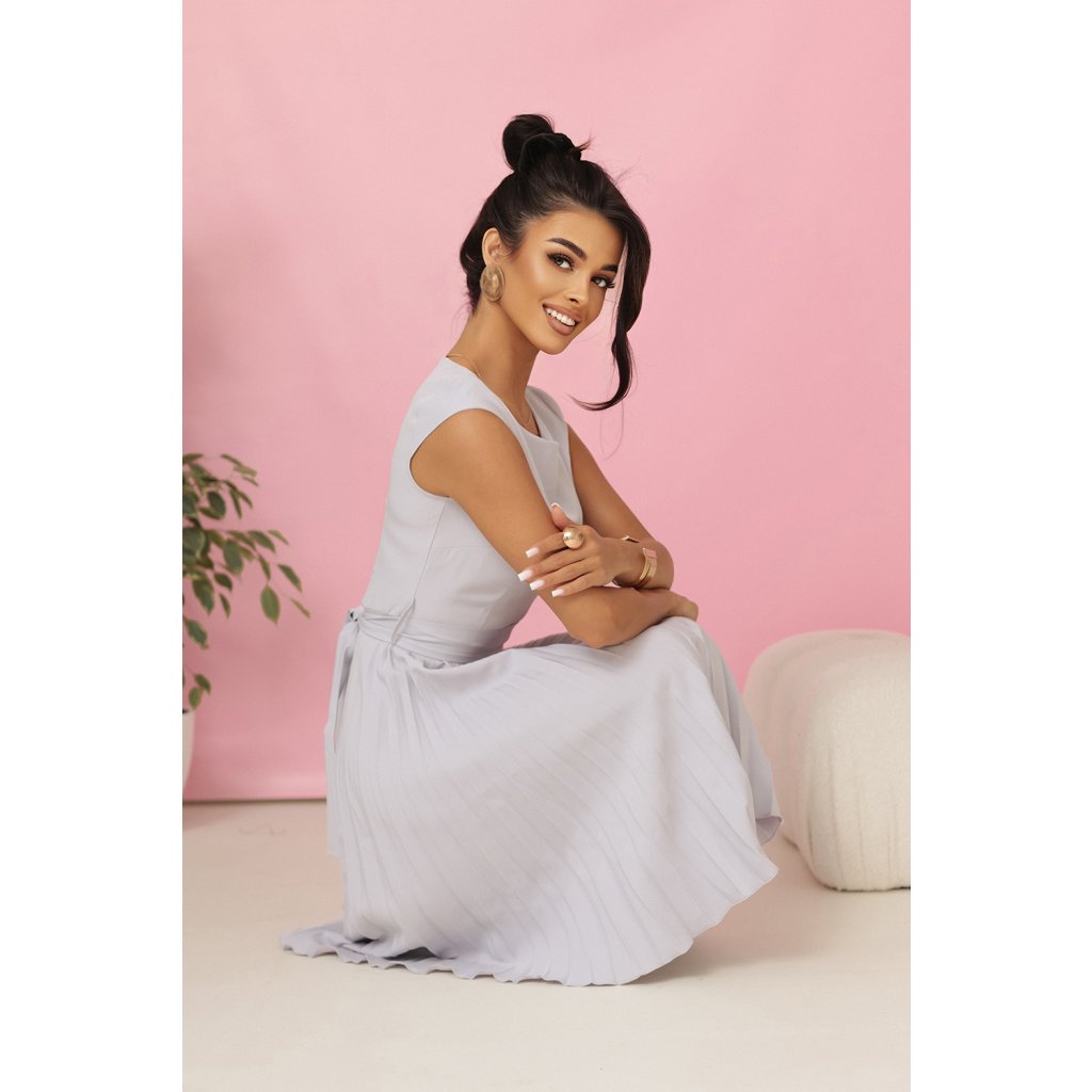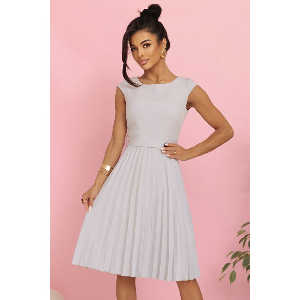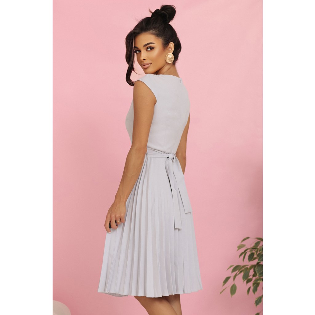 LILA Plisované šaty s krátkym rukávom a opaskom - sivé 311-20
