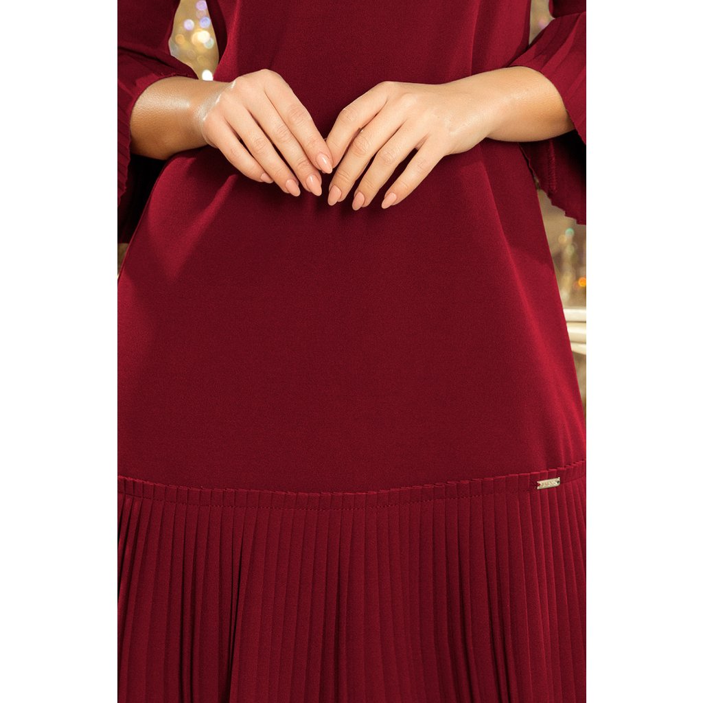 LUCY - skromné a krásne burgundské šaty so záhybmi. Značka numoco. Materiál: 95% polyester, 5% elastan