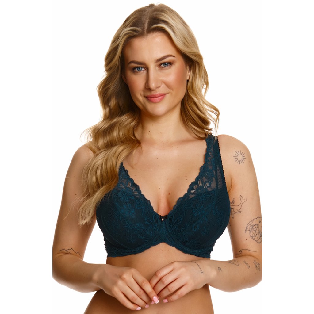 Dámska push-up podprsenka v smaragdovej farbe.- vyrobené výhradne z krásnej čipky