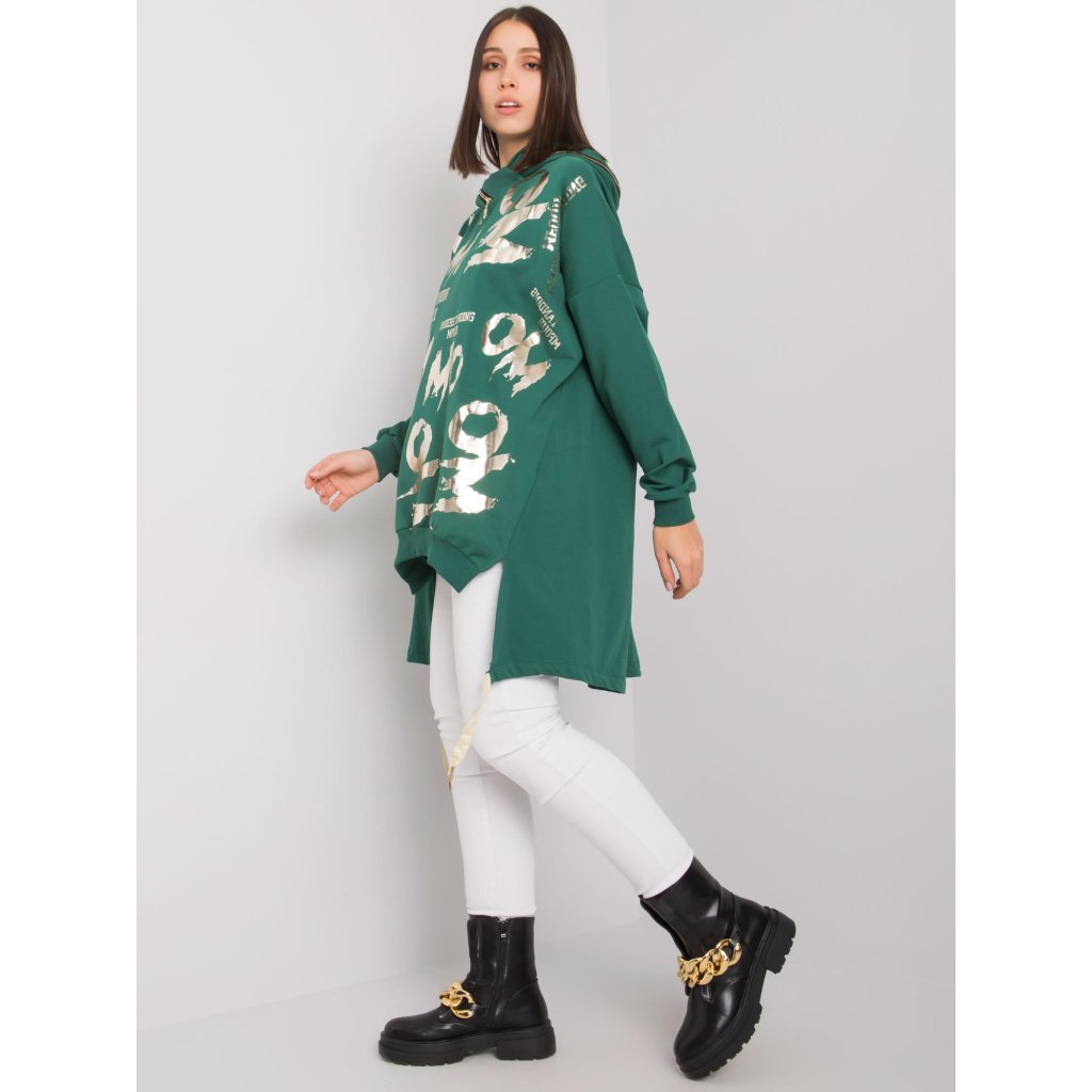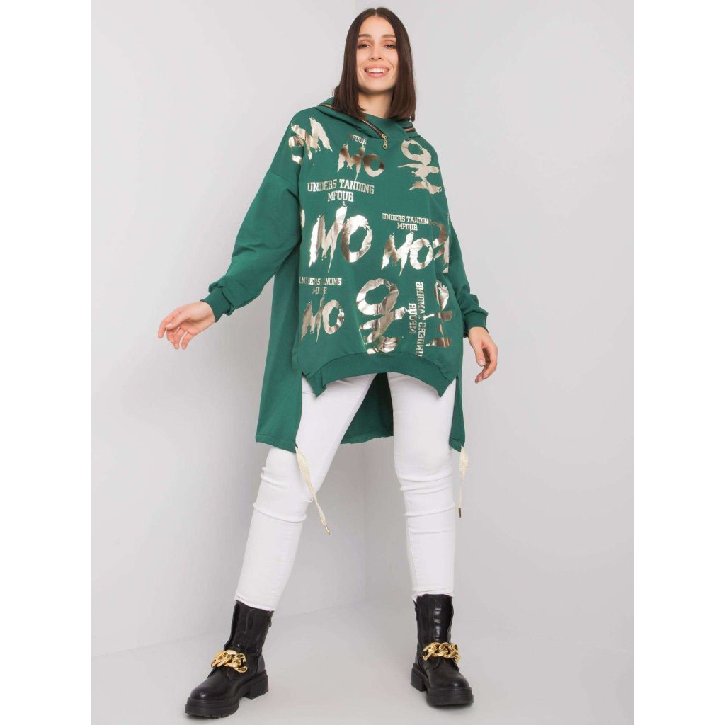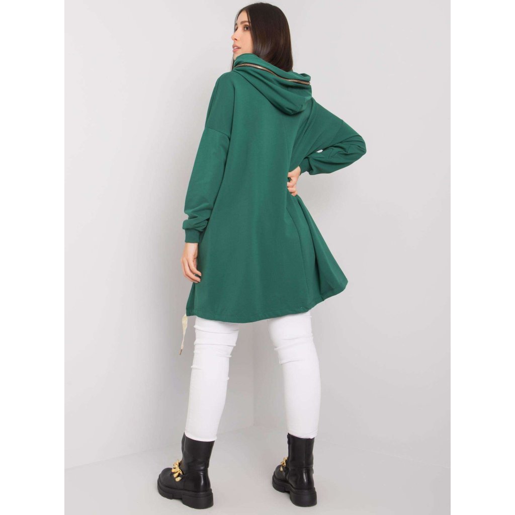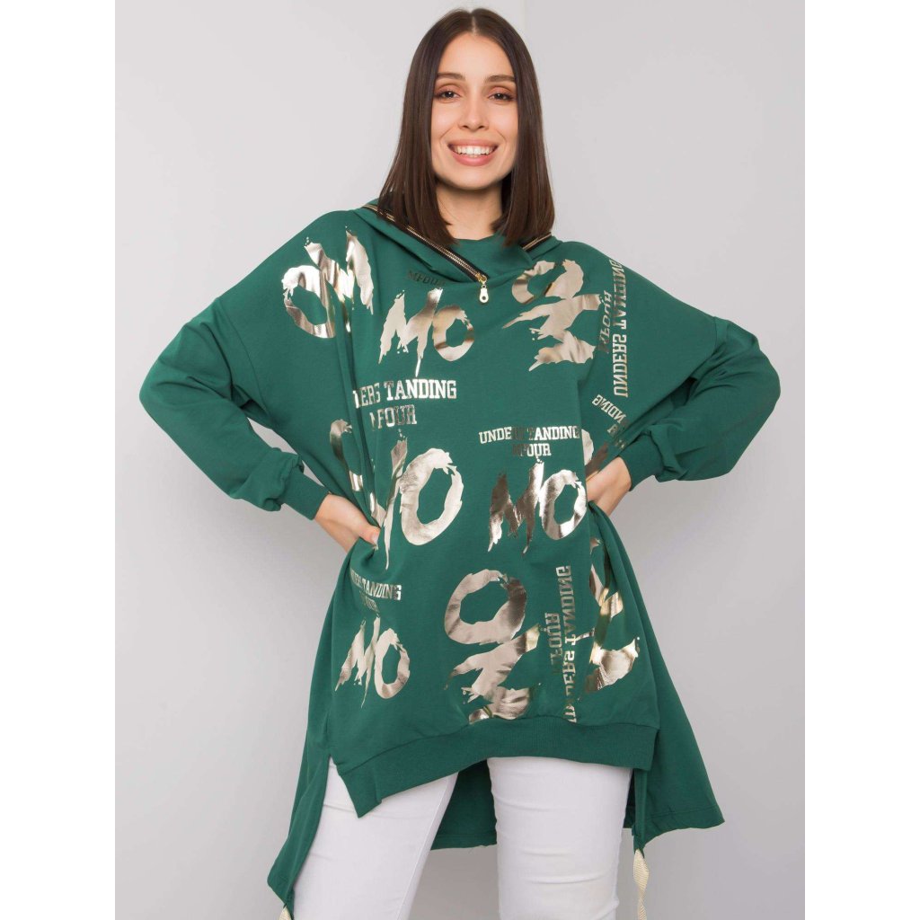 Tmavozelená bavlnená mikina Allisia je perfektnou voľbou pre ženy so širšími ramenami a bokmi. Mikina je vyrobená z mäkkej a elastickej látky a vyrobená z 90% bavlny a 10% elastanu. Celková dĺžka 86 cm, šírka v podpazuší 70 cm, dĺžka rukávu 56 cm. Dáme do práčky na 30 °C.