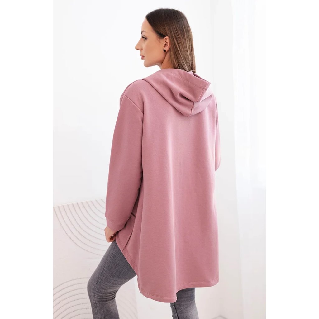 Mikina s dlhším chrbtom a kapucňou tmavo ružová