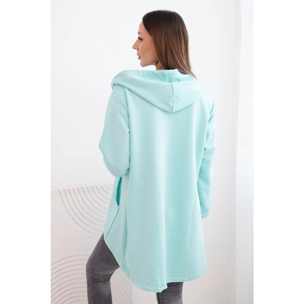 Predstavujeme mikinu s dlhším zadným dielom a kapucňou. Mikina má zapínanie na zips a vrecká na prednej strane. Vďaka hrubšiemu materiálu je ideálna na chladnejšie večery alebo jesenné dni. Mikina je vyrobená z kvalitného materiálu. Veľkosť je univerzálna a vyhovuje dámam, ktoré nosia veľkosť S, M alebo L.