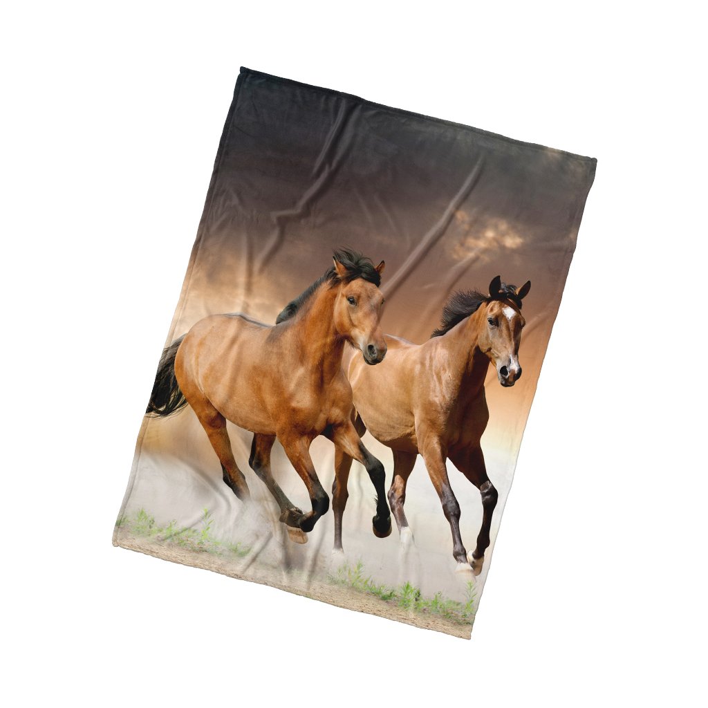 Mikroflísová deka Horses Brownies, je vyrobená zo 100% polyesteru, koralového rúna
