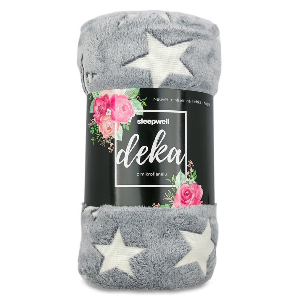 Mikroplyšová svietiaca deka Hviezdy šedé 150x200 cm