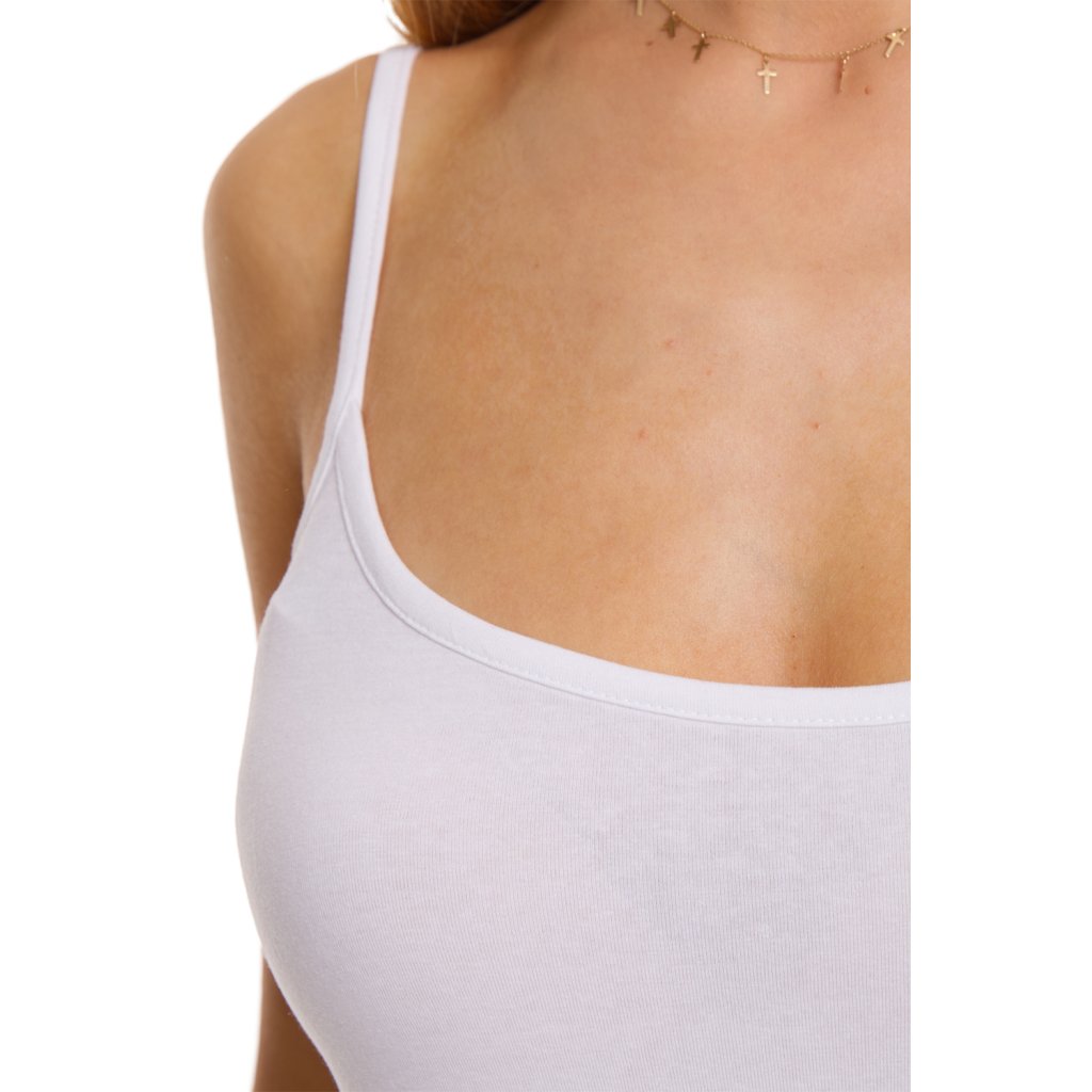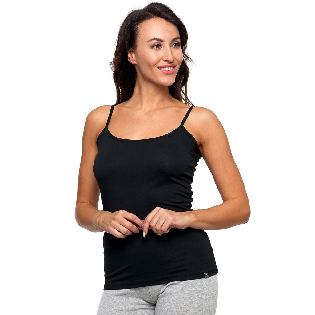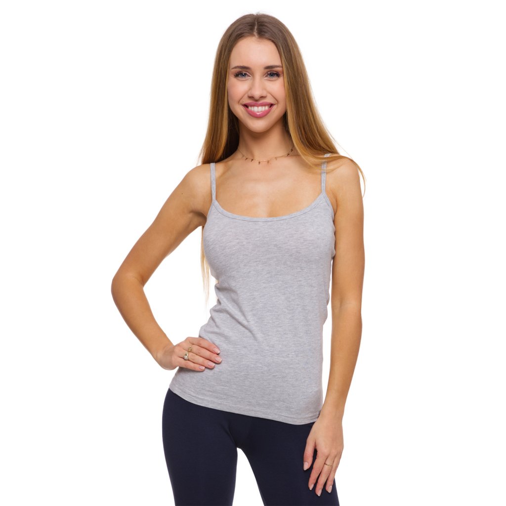 Pohodlné tielko s tenkými ramienkami, vyrobené z bavlny s elastanom. Je veľmi priedušná, pružná a odolná. Výber vysokokvalitných materiálov zaručuje, že pôvodná veľkosť zostane nezmenená. Tento model je odolný, pohodlný a mäkký na dotyk. Móda obopínajúca telo. Ideálne na každú príležitosť! Zloženie: 95% bavlna, 5% elastan.Dodatočné parametre