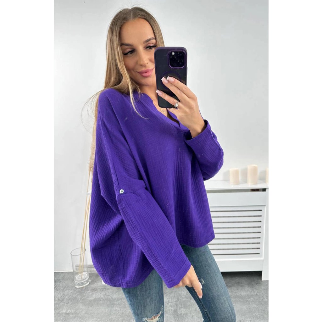 Bavlnená blúzka s vyhrnutými rukávmi je ideálnou voľbou pre milovníčky módneho štýlu. Táto blúzka je vyrobená z kvalitnej bavlny, je nielen mäkká a príjemná na dotyk, ale aj veľmi odolná a ľahko sa čistí. Bonusom tejto blúzky sú ohrnuté rukávy, vďaka ktorým si môžete dĺžku rukávov prispôsobiť svojim potrebám a preferenciám. Vďaka tomu sa dá nosiť v lete aj na jeseň, keď si počasie vyžaduje trochu teplejšie oblečenie. Je ideálny pre tých, ktorí ocenia pohodlie, kvalitu a krásu. Veľkosť je univerzálna a vyhovuje dámam, ktoré nosia veľkosť S, M alebo L.
