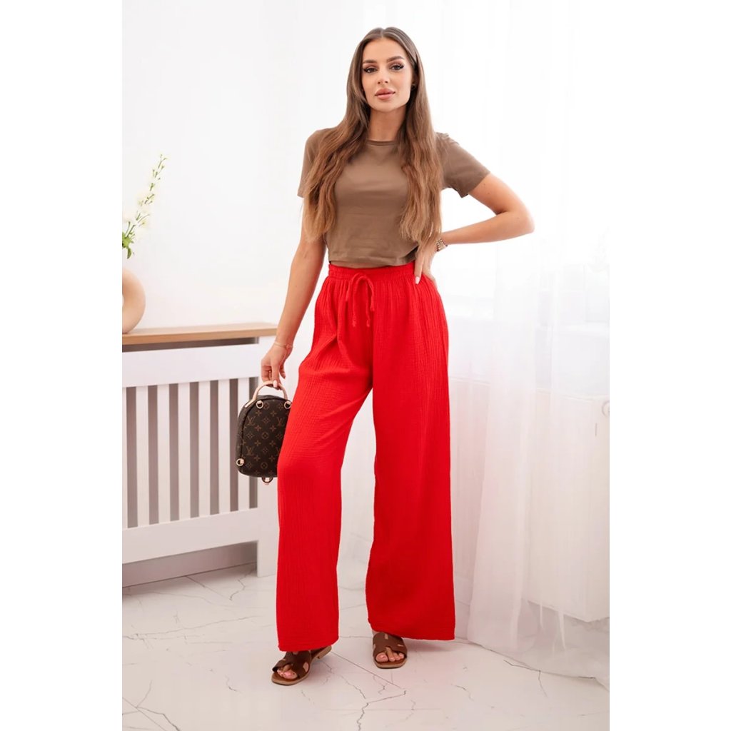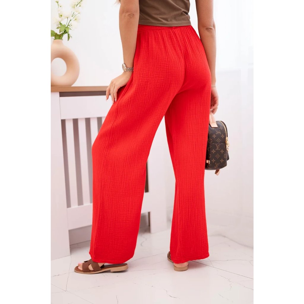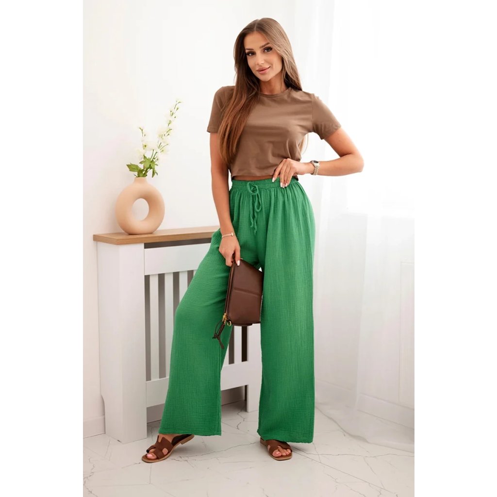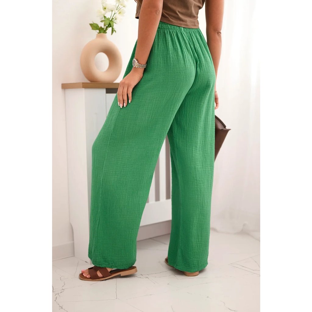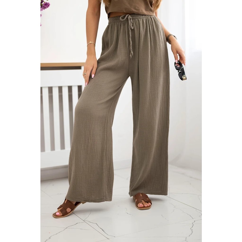 Objavte jedinečné nohavice z mäkkého, priedušného mušelínu, ktoré poskytujú nevídané pohodlie pri nosení aj počas najhorúcejších dní. Ich široké nohavice dodávajú celému oblečeniu módny, moderný charakter, opticky predlžujú postavu a dodávajú celkovému štýlu ľahkosť. Tieto nohavice sú ideálne na každodenné nosenie, do práce aj na špeciálne príležitosti a skvele sa hodia k rôznym zvrškom, od minimalistických tričiek až po elegantné blúzky a svetre. Stavte na klasický, ale sofistikovaný dizajn, ktorý vám umožní vychutnať si pohodlie aj originálny štýl. Veľkosť je univerzálna a zodpovedá veľkosti S, M alebo L.