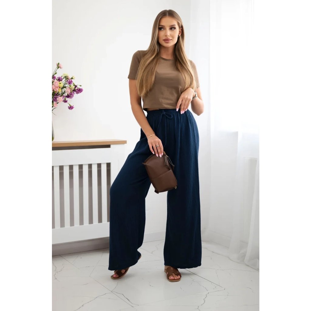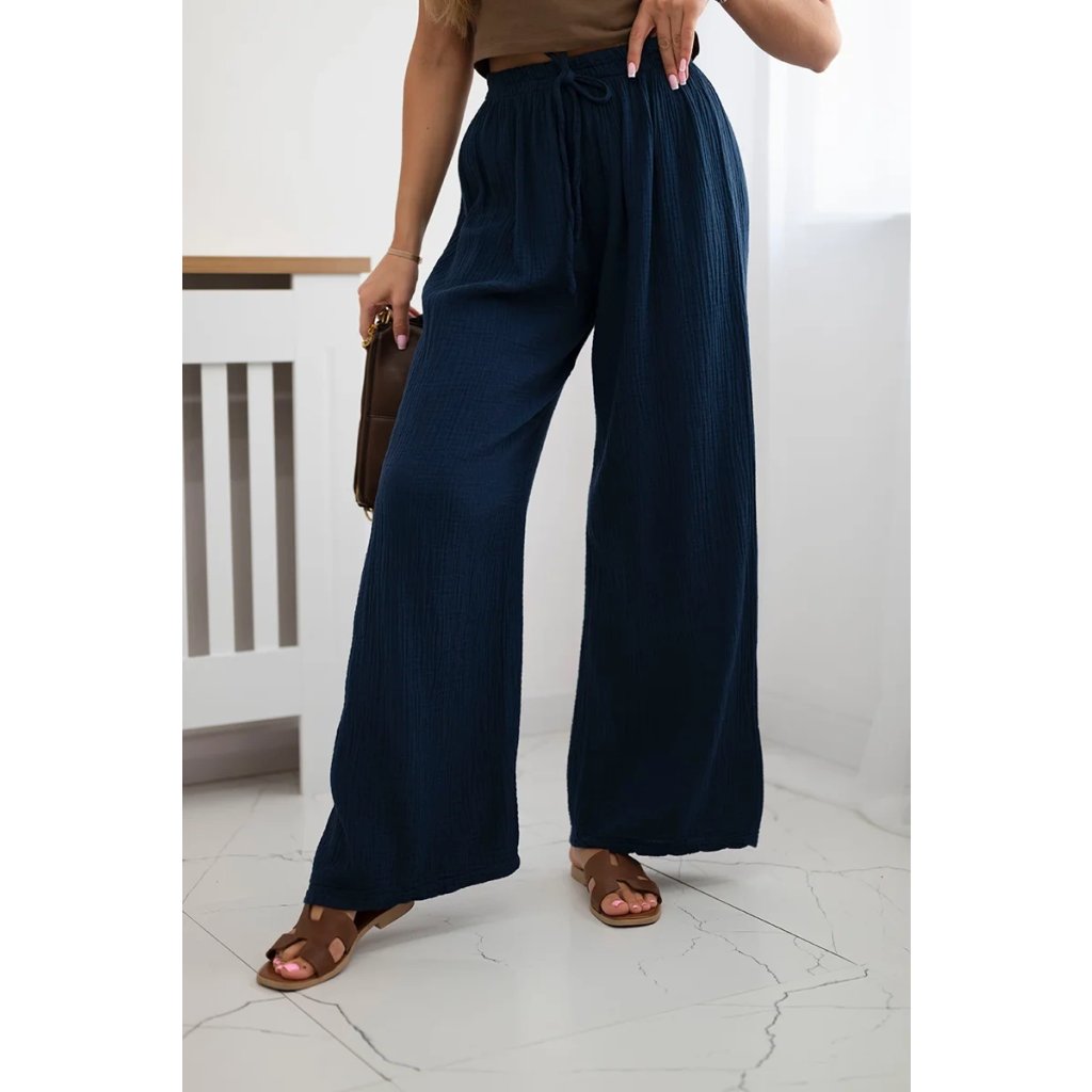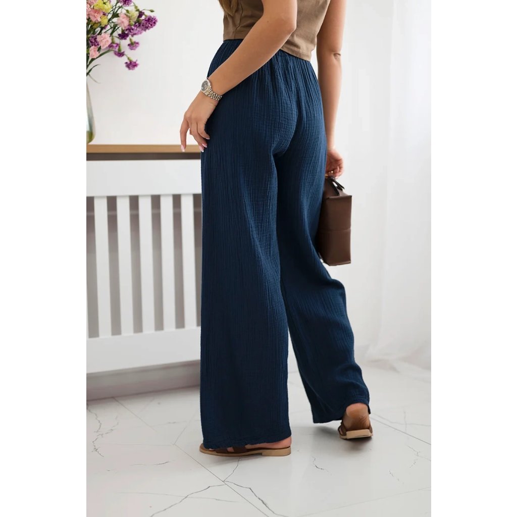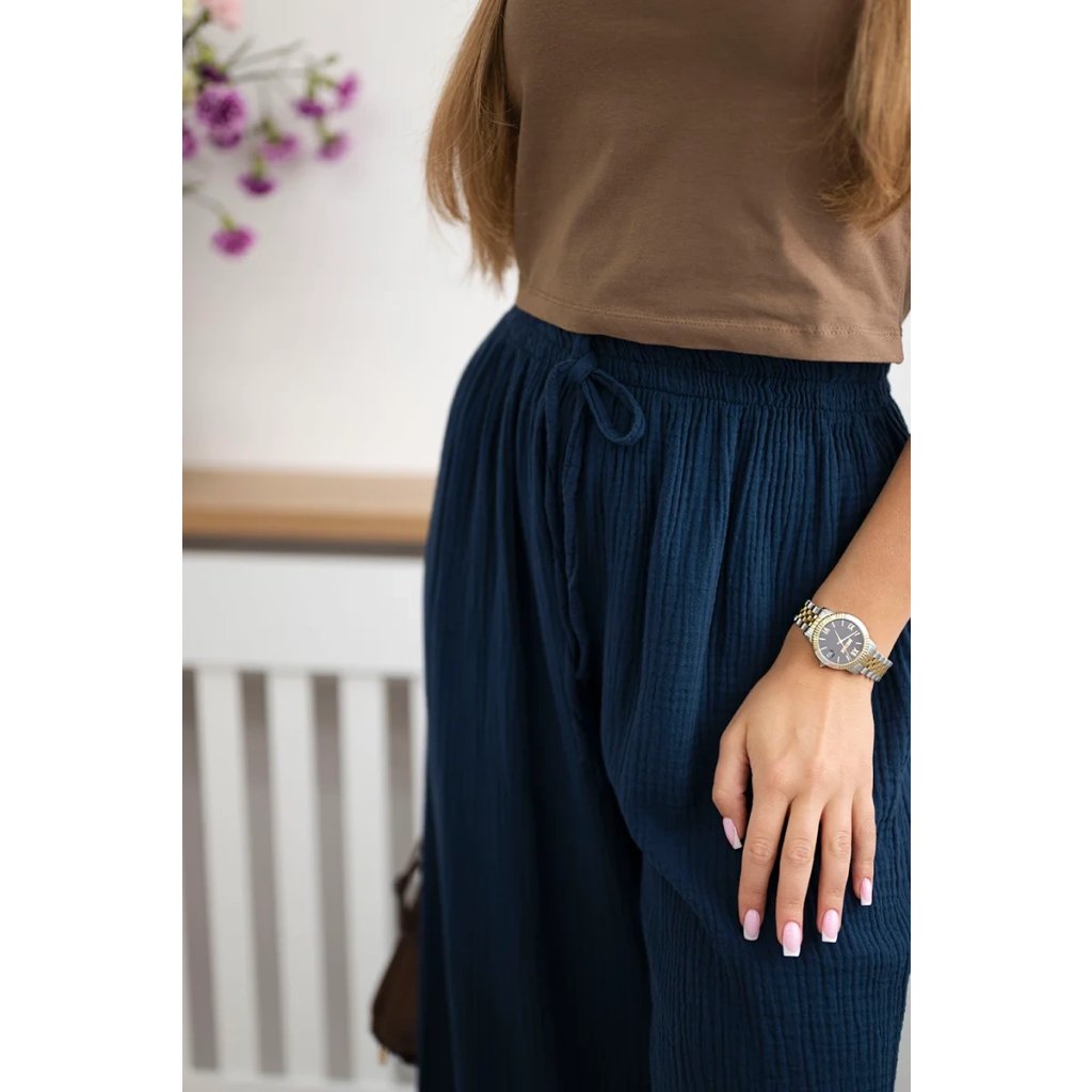Mušelínové nohavice so širokou nohavicou námornícka modrá