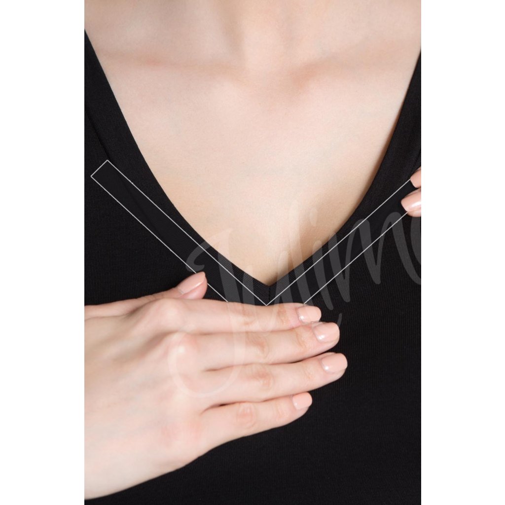 Obojstranné priesvitné záplaty, ktoré uľahčujú štýl hlbokých výstrihov.Vďaka týmto záplatám sa látka neodlepuje, nezošmykuje a zostáva na svojom mieste.Dodatočné parametre