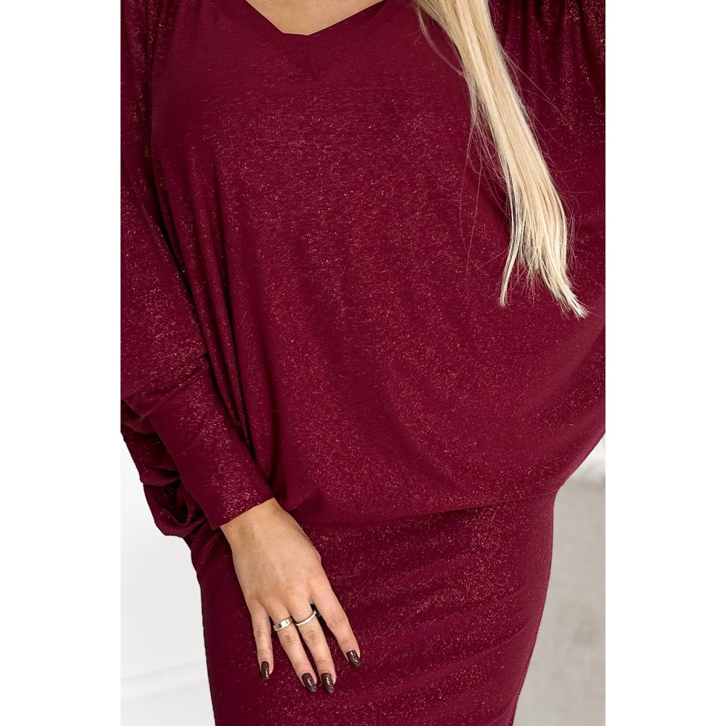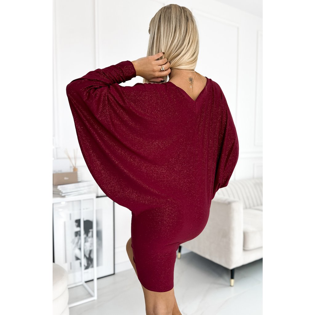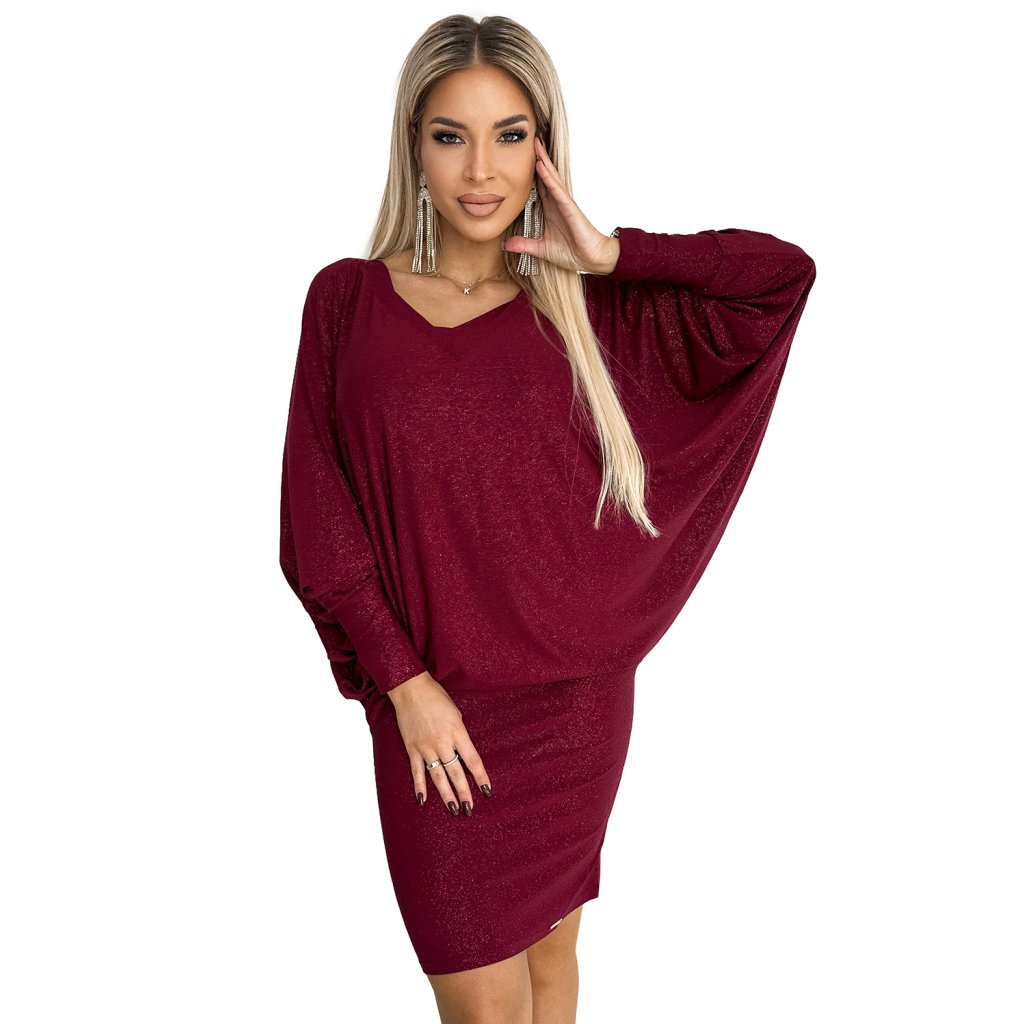 Numoco Netopýří šaty s výstrihom - vínová farba s trblietkami 402-4