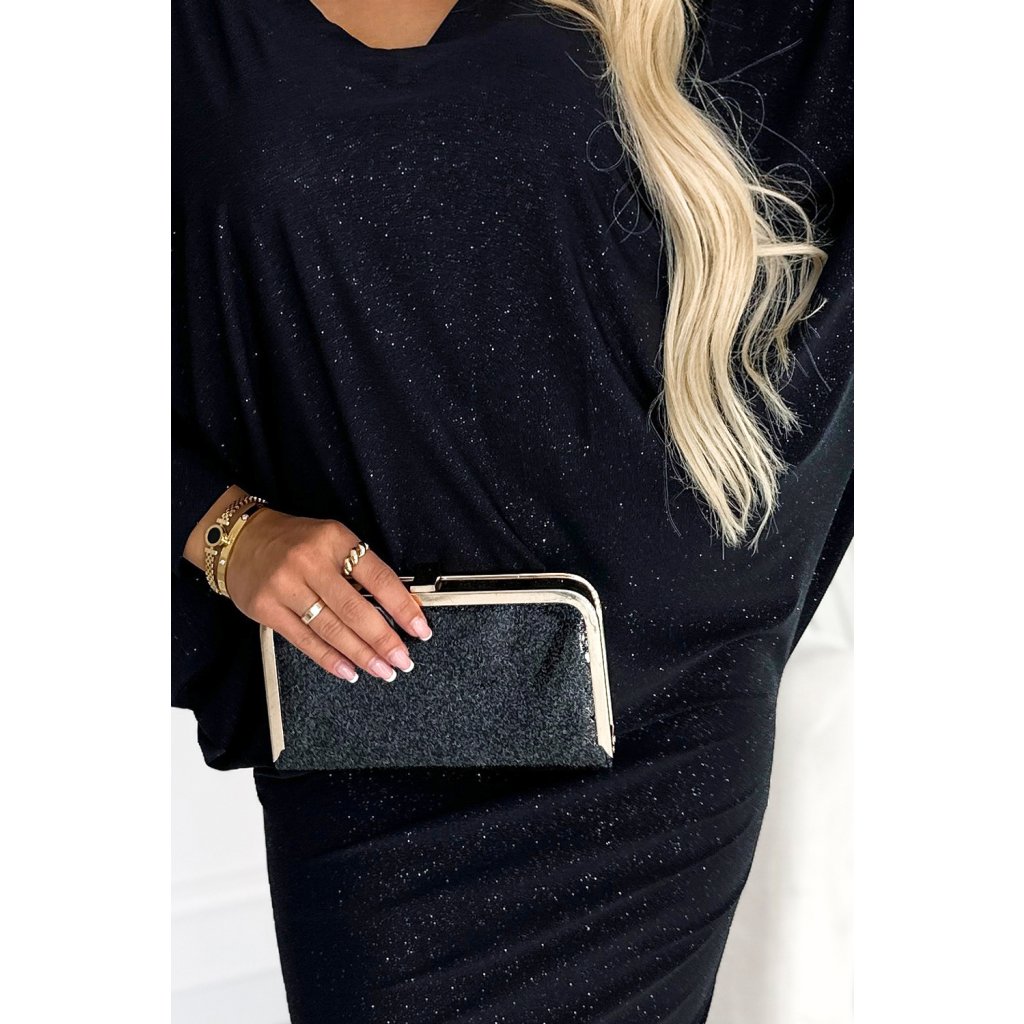 Netopýří šaty s výstřihem - Černá barva se třpytkami 402-5 - výprodej