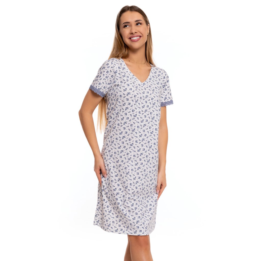 Dámska nočná košieľka Moraj PDK2900-015 MAXI je vyrobená z mäkkého úpletu z bavlny a elastanu. Jej jednoduchý, voľný strih, výstrih do V a krátke rukávy zaisťujú každodenné pohodlie. Priedušný materiál podporuje pohodlný spánok a relaxáciu doma. Všestranný a funkčný strih na celoročné použitie. Zloženie: 95% bavlna, 5% elastan.Dodatočné parametre