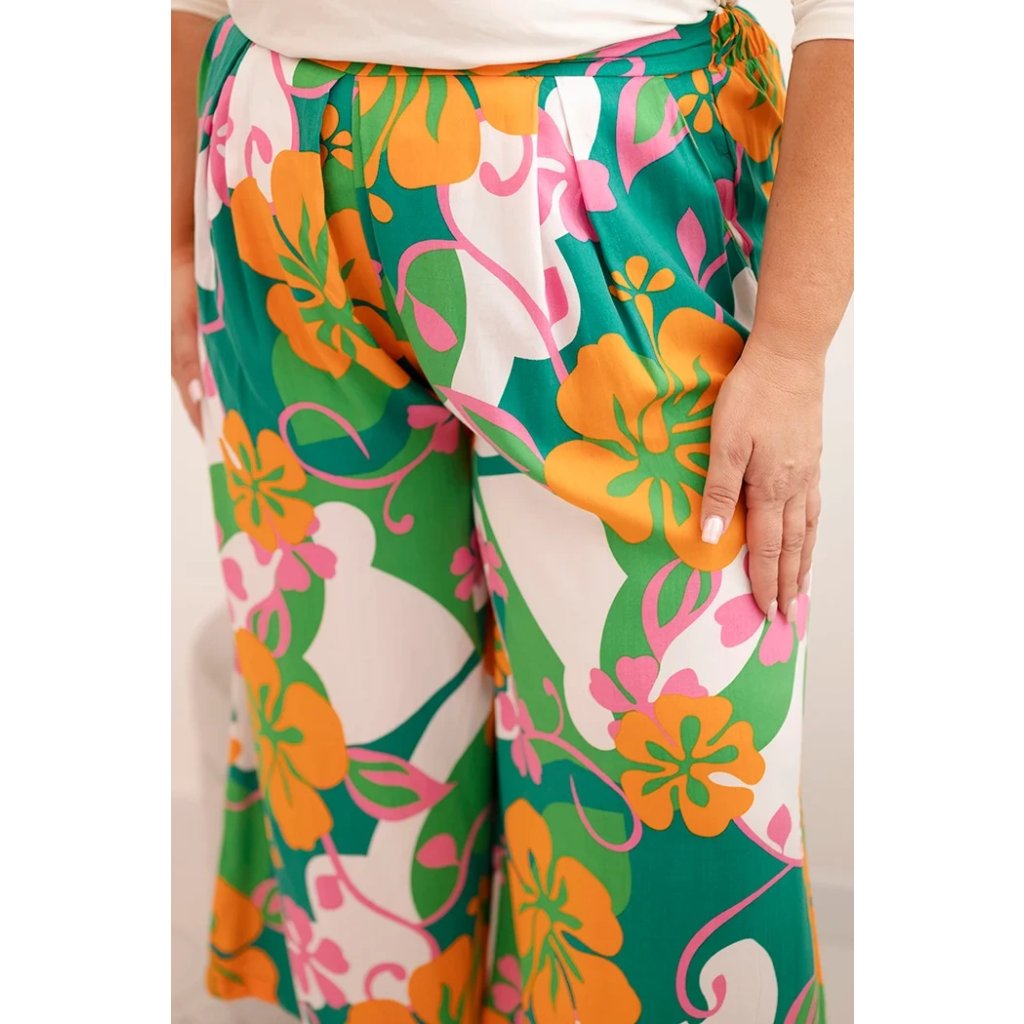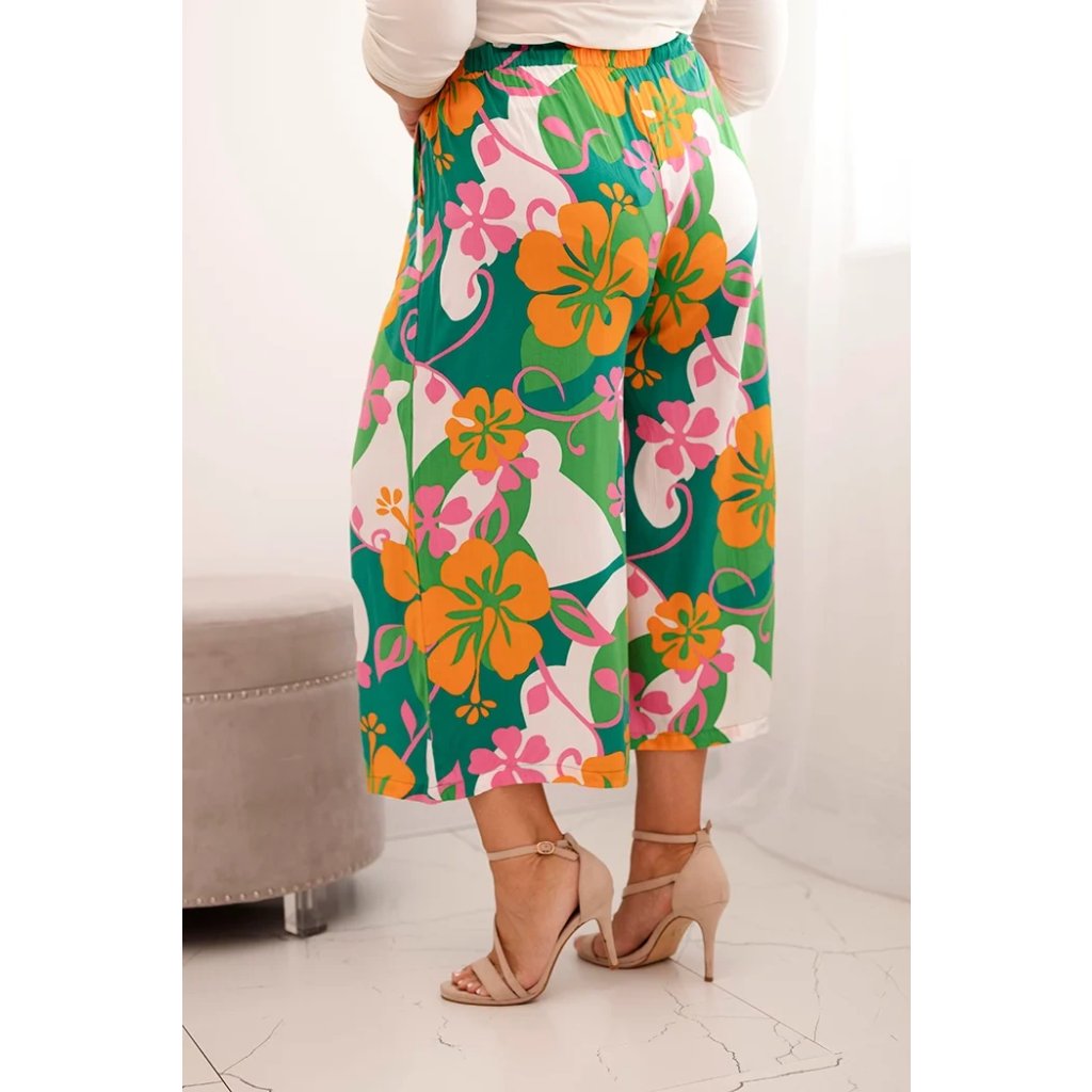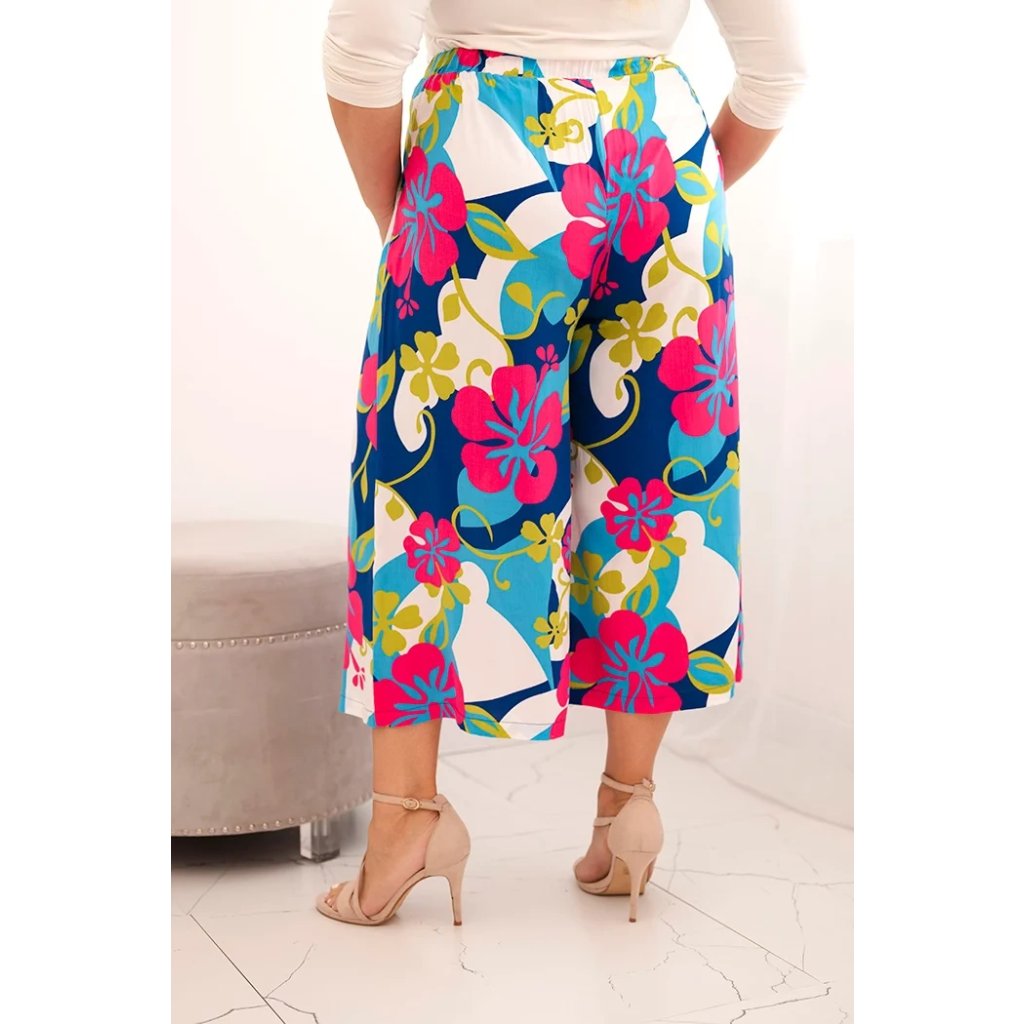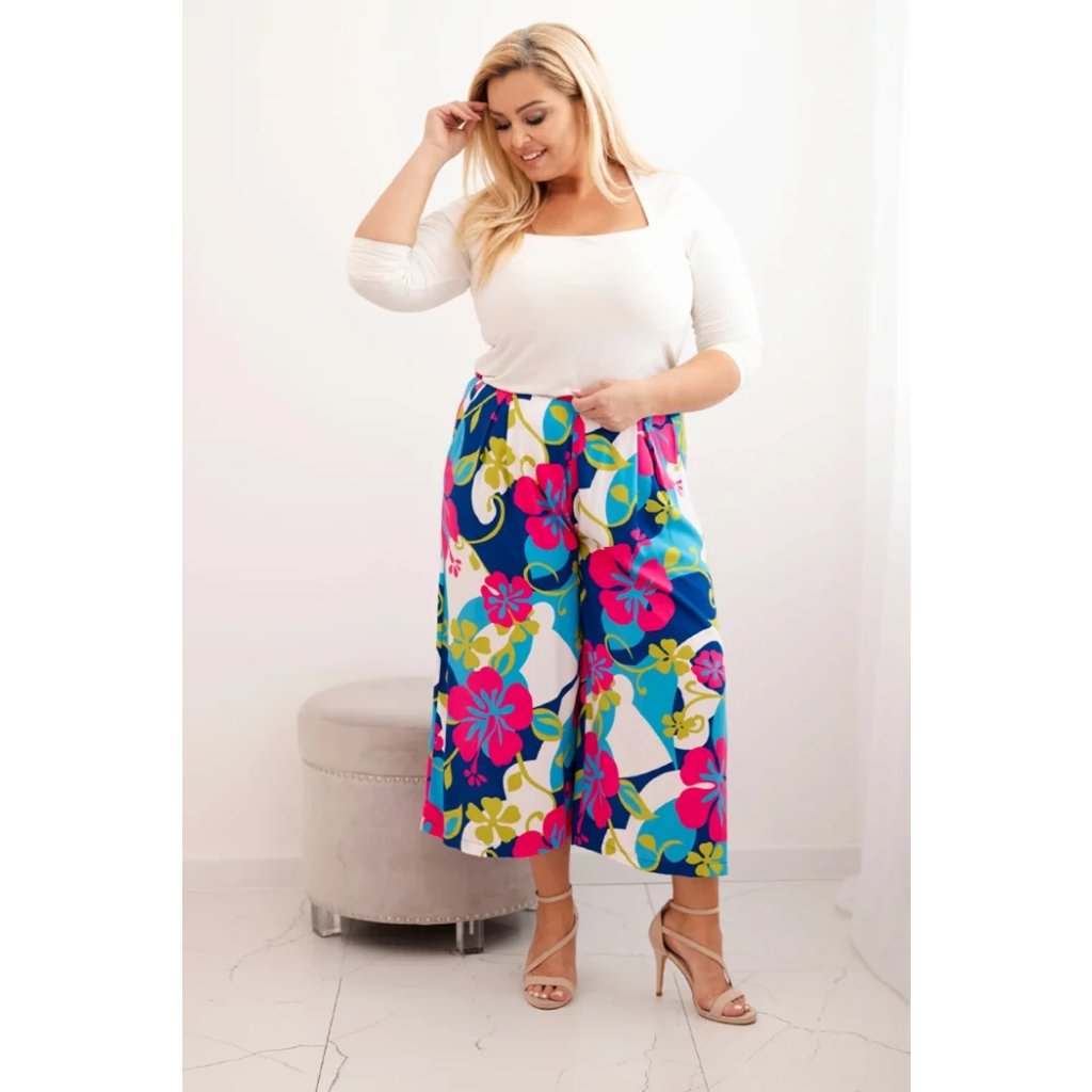 Nohavice Plus Size MY311 z viskózy s kvetinovým vzorom