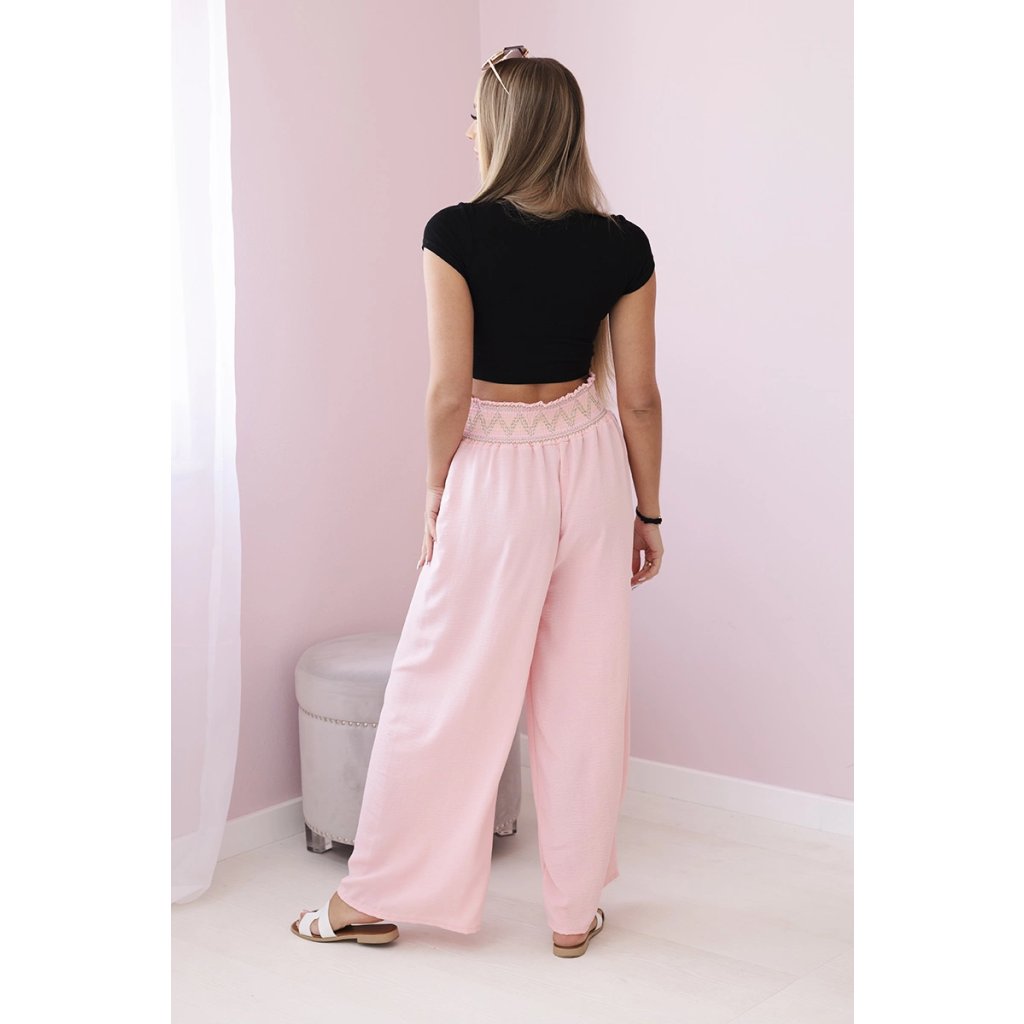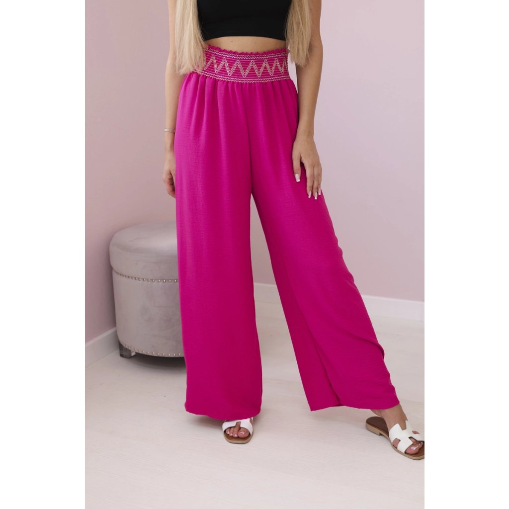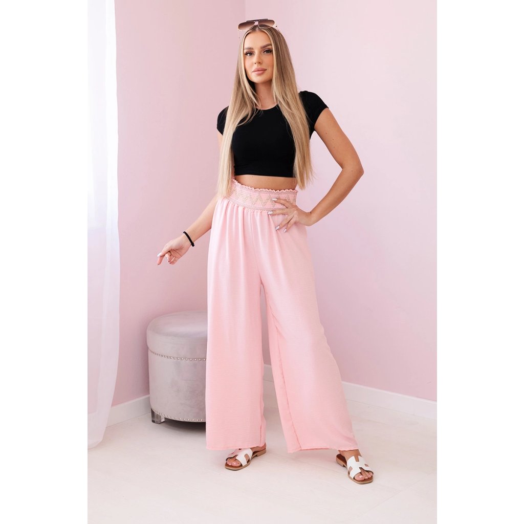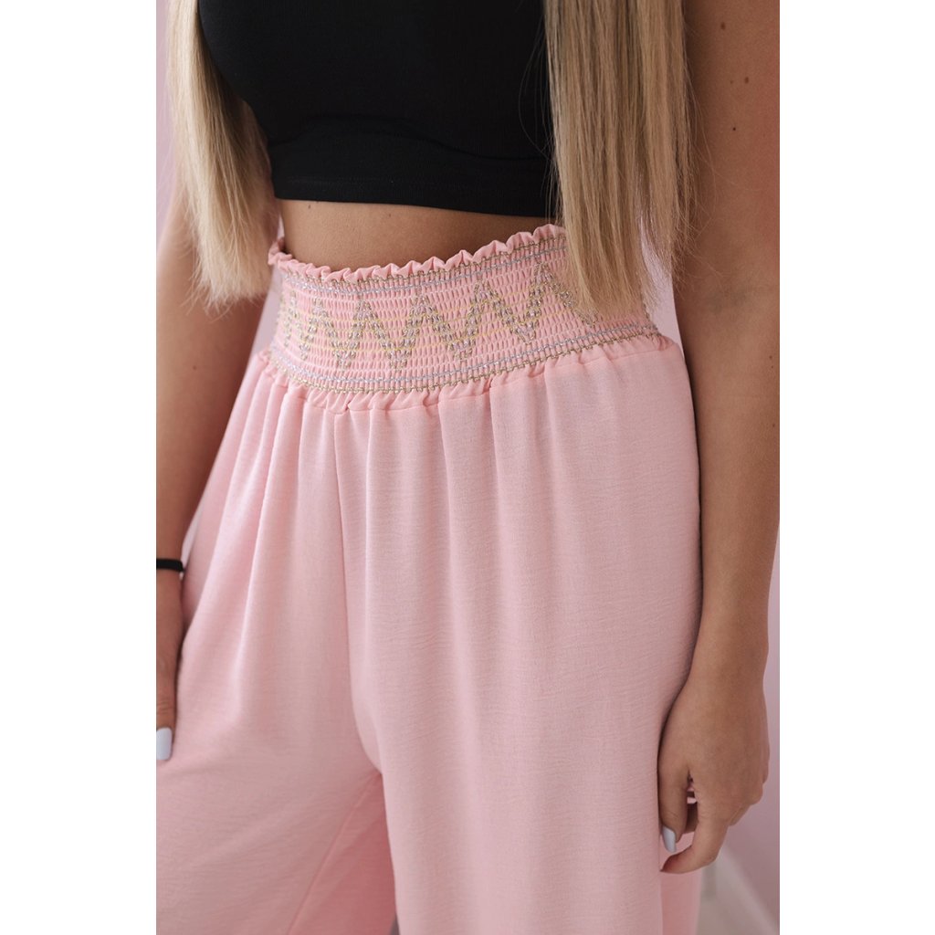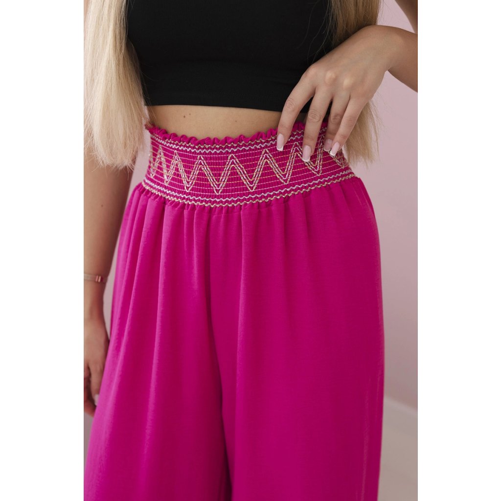 Nohavice so širokým elastickým pásom sú praktickou a pohodlnou voľbou na každodenné nosenie. Vďaka širokému elastickému pásu sa postará o dokonalé prispôsobenie a pohodlie pri nosení. Ideálne na relaxačné prechádzky, domáce práce alebo neformálne stretnutia s priateľmi. Dokonale kombinujú pohodlie s módnym štýlom a široká guma im dodáva originalitu a ľahkosť. Tieto nohavice sa rýchlo stanú obľúbeným kúskom vášho šatníka a umožnia vám užívať si pohodlie po celý deň. Veľkosť je univerzálna a je vhodná pre ženy, ktoré nosia veľkosť S, M alebo L.