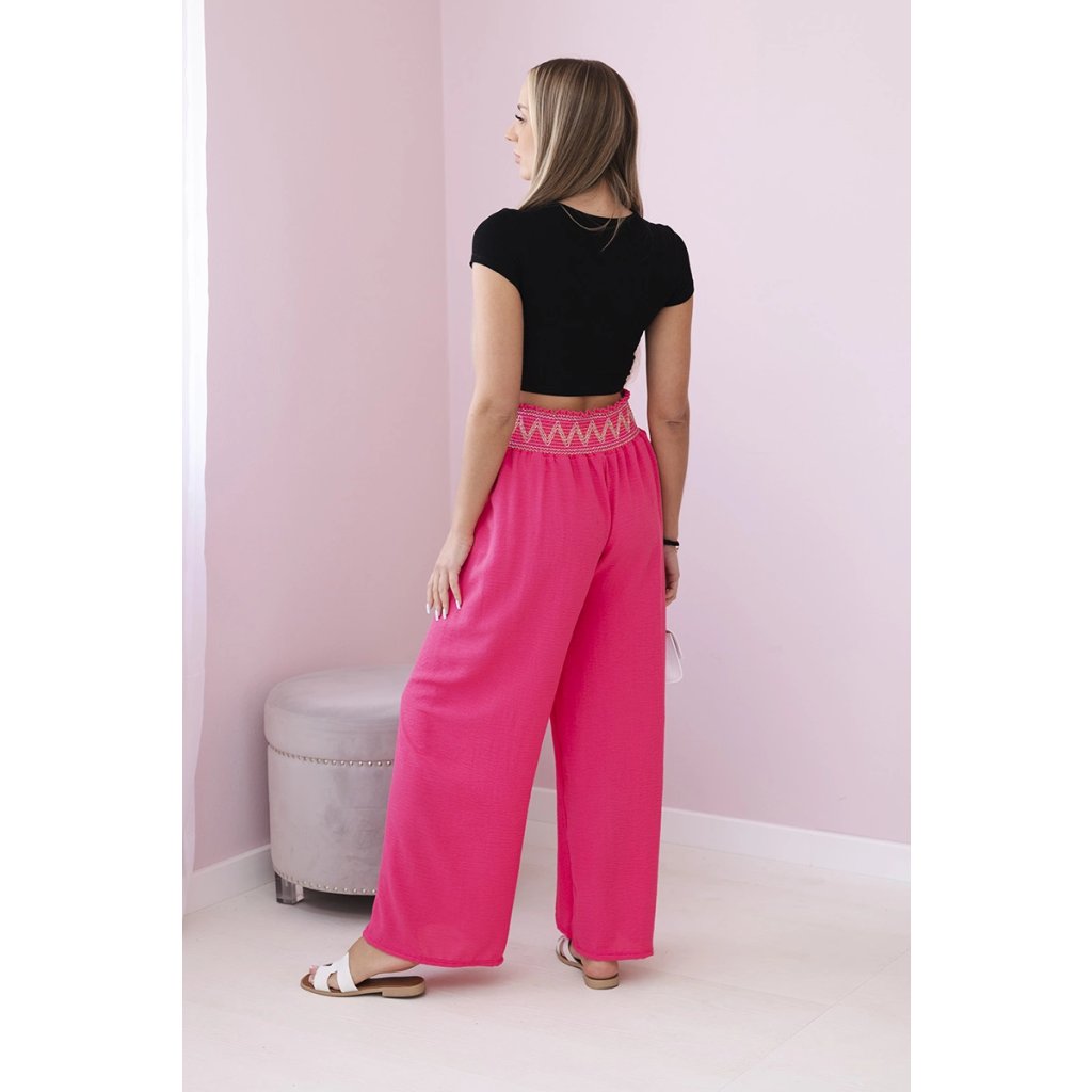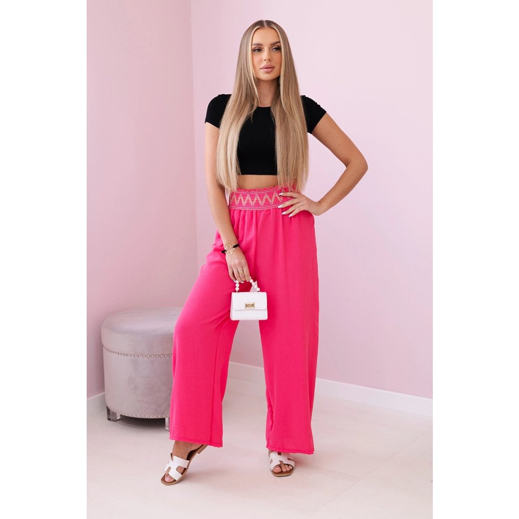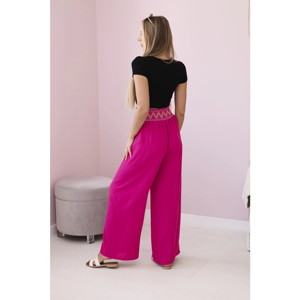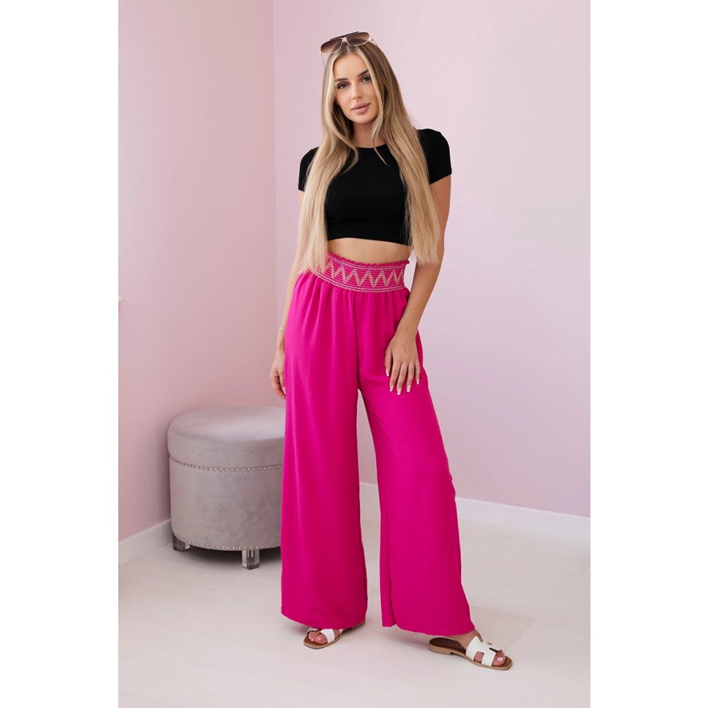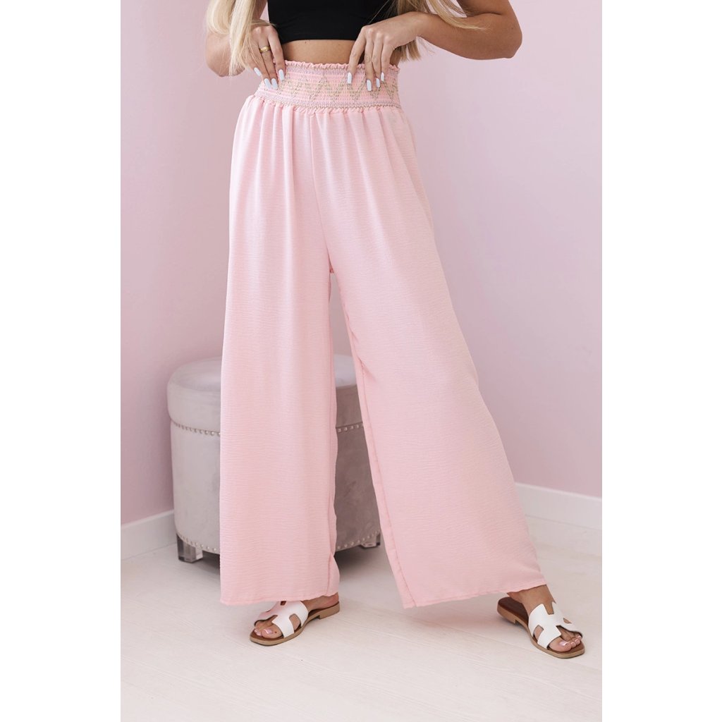 Nohavice so širokým elastickým pásom sú praktickou a pohodlnou voľbou na každodenné nosenie. Vďaka širokému elastickému pásu sa postará o dokonalé prispôsobenie a pohodlie pri nosení. Ideálne na relaxačné prechádzky, domáce práce alebo neformálne stretnutia s priateľmi. Dokonale kombinujú pohodlie s módnym štýlom a široká guma im dodáva originalitu a ľahkosť. Tieto nohavice sa rýchlo stanú obľúbeným kúskom vášho šatníka a umožnia vám užívať si pohodlie po celý deň. Veľkosť je univerzálna a je vhodná pre ženy, ktoré nosia veľkosť S, M alebo L.
